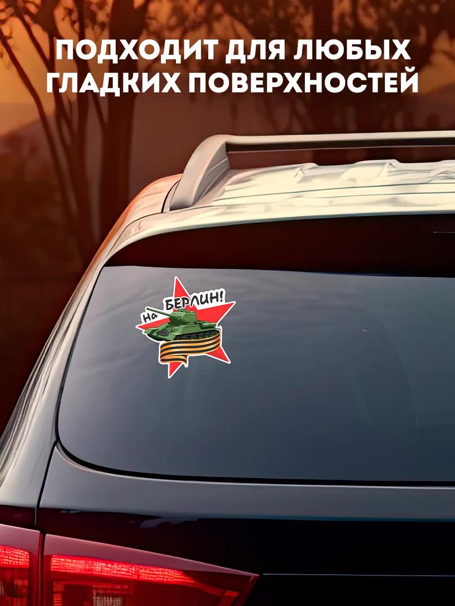 Наклейка на автомобиль к празднику 9 Мая - стильное и яркое украшение для вашего железного коня! Стикер на автомобиль ко Дню Победы легко наклеить и демонтировать благодаря подробной инструкции, которая идет в комплекте. Такой аксессуар подчеркнет вашу гордость за героев.