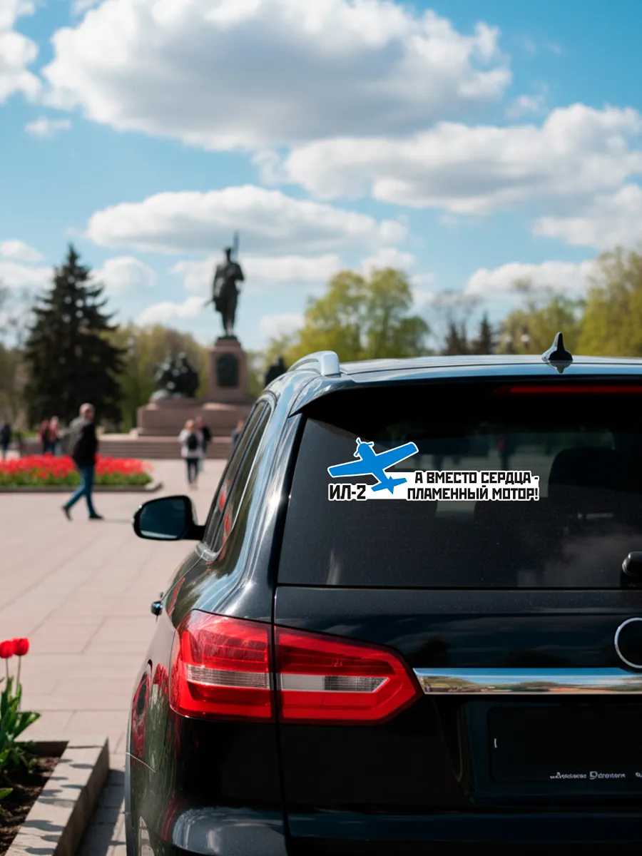 Эта наклейка на машину 9 мая адресована тем, для кого автомобиль — не просто средство передвижения, а друг, соратник, часть жизни. Наклейка с надписью на авто 9 мая «А вместо сердца — пламенный мотор» идеально подходит для водителей, которые понимают: настоящая техника живет, дышит и чувствует вместе с человеком.