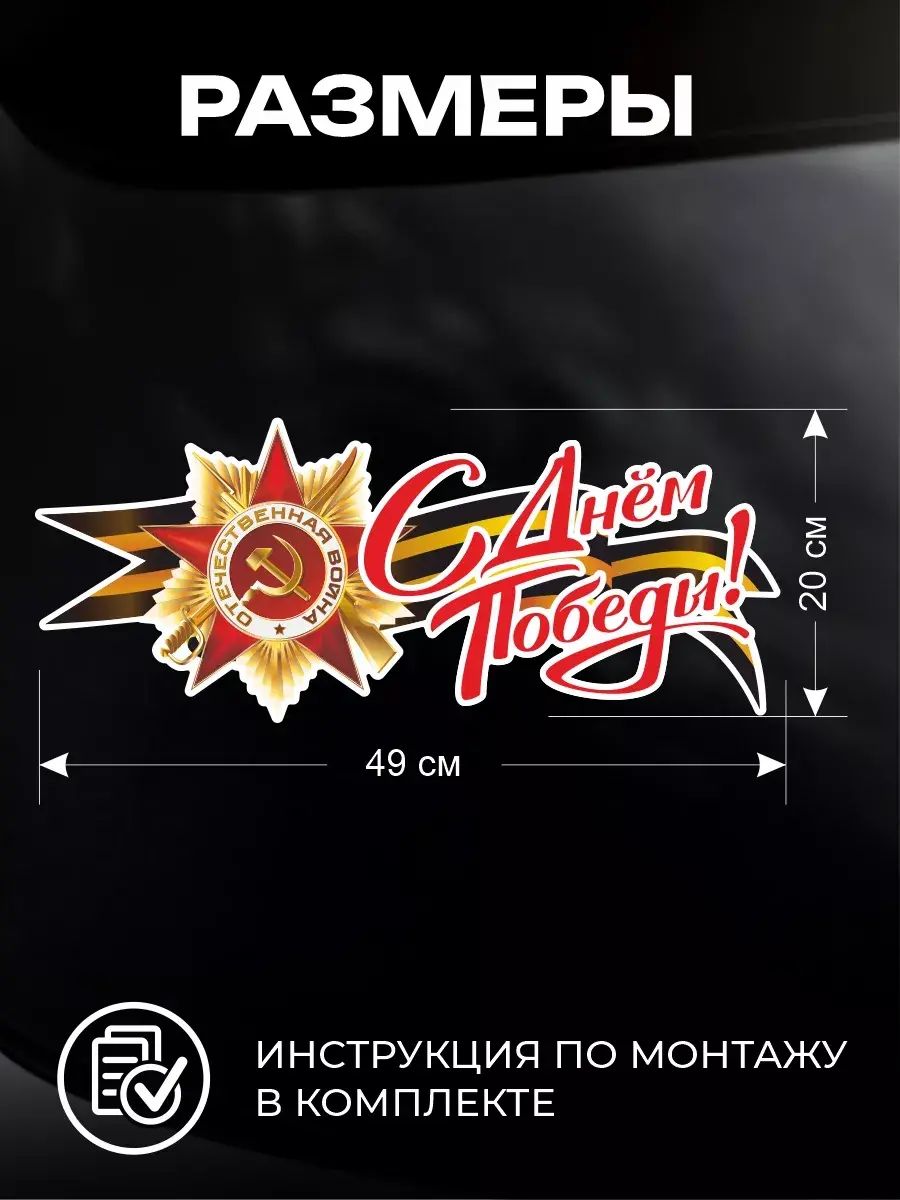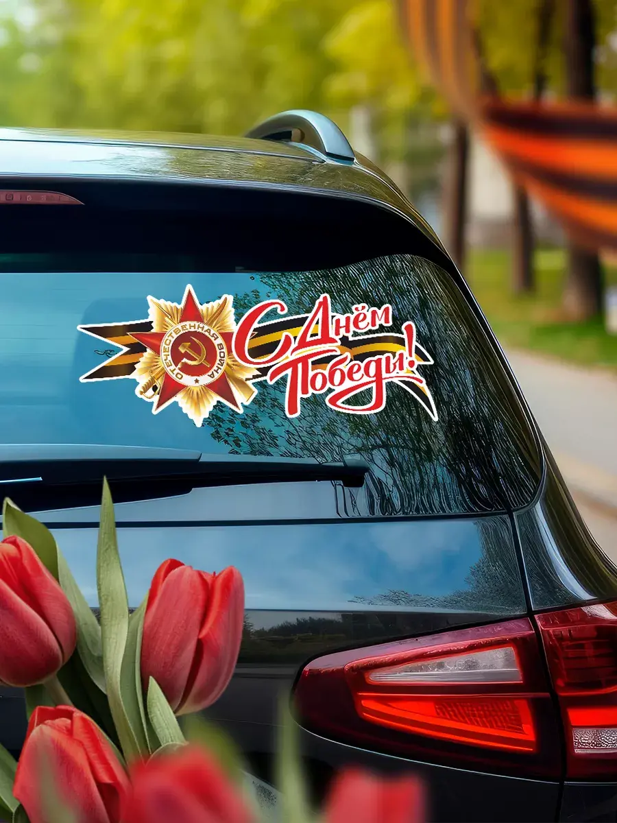 Наклейка на автомобиль к празднику 9 Мая - стильное и яркое украшение для вашего железного коня! Стикер на автомобиль ко Дню Победы легко наклеить и демонтировать благодаря подробной инструкции, которая идет в комплекте. Такой аксессуар подчеркнет вашу гордость за героев.