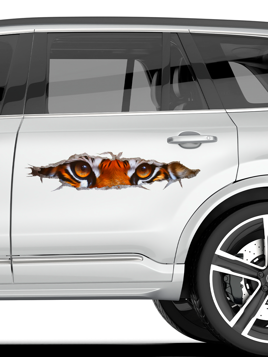 Наклейка на машину тигр предназначена не только для украшения и тюнинга, она может скрыть дефект и повреждение корпуса, царапины и ржавчины, вмятина так же станет менее заметна!