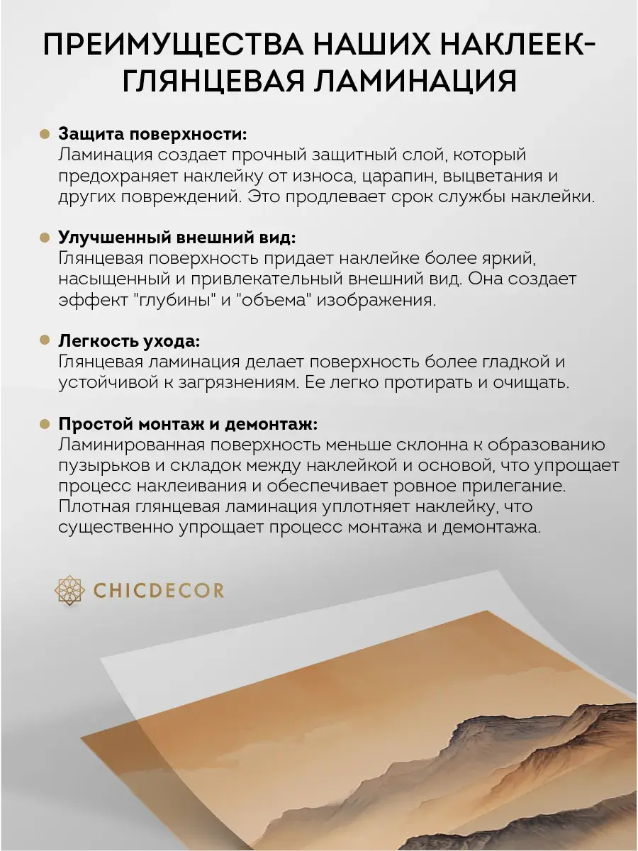Преимущества наклеек CHIC DECOR - ГЛЯНЦЕВАЯ ЛАМИНАЦИЯ
