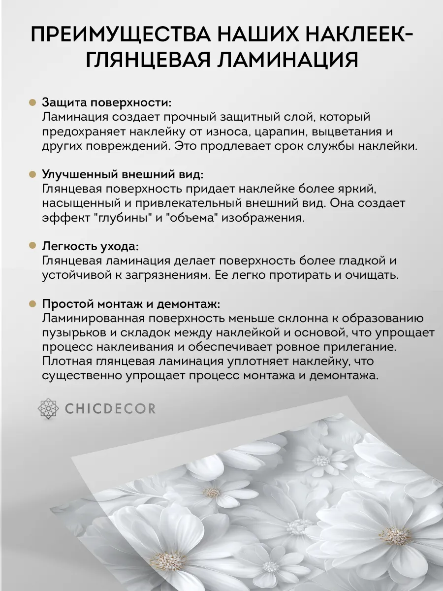Преимущества наклеек CHIC DECOR - ГЛЯНЦЕВАЯ ЛАМИНАЦИЯ