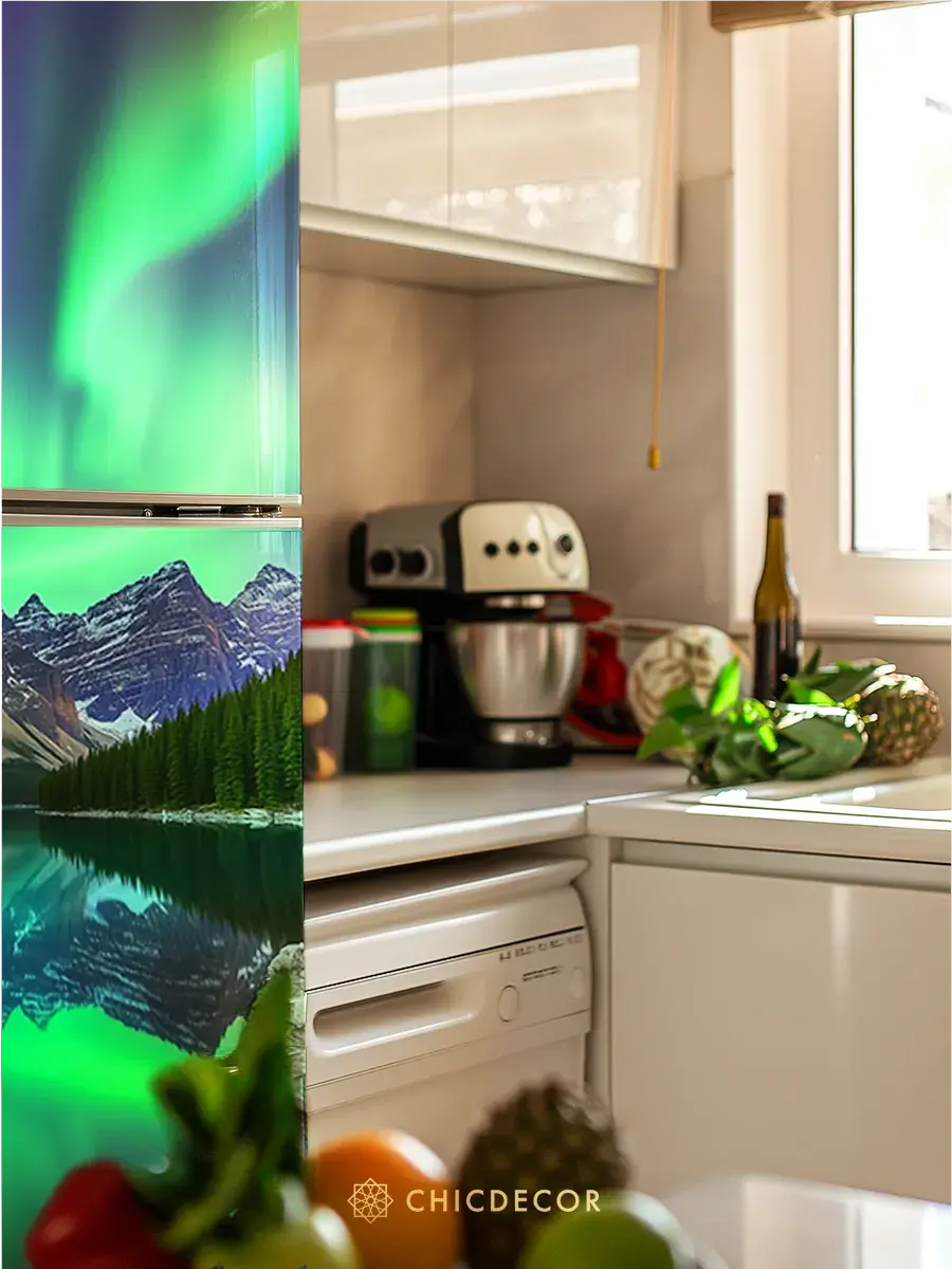 Обновите интерьер кухни без лишних затрат! Интерьерный декор на холодильник от CHIC DECOR Discount - новый стильный акцент в вашем доме.В наличии идентичные рисунки с ламинацией - такие наклейки не выгорят со временем на солнце и проще в уходе.