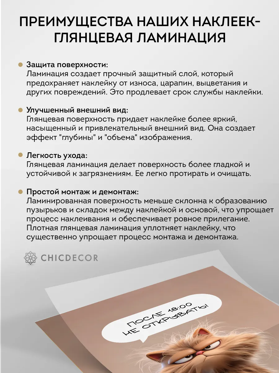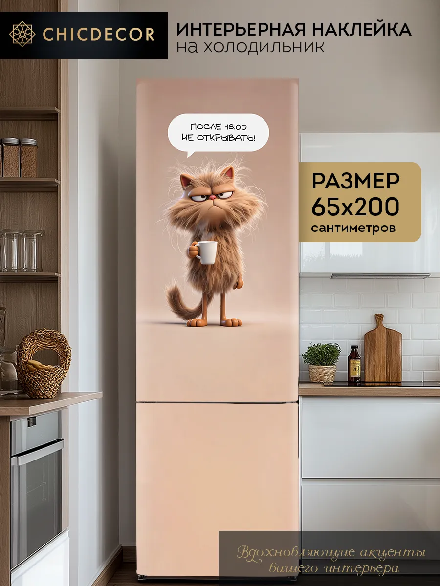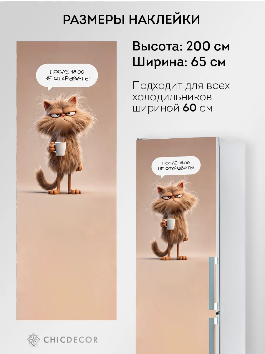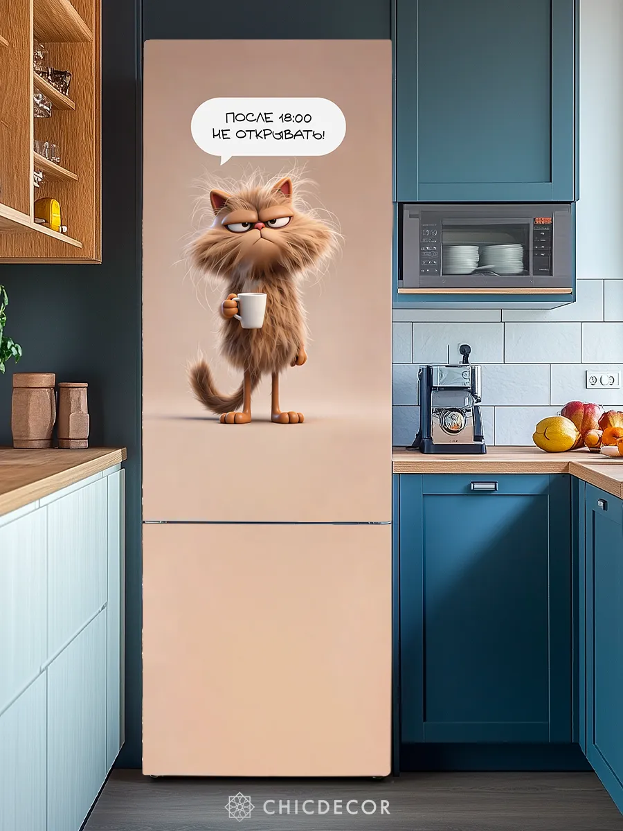 Установка не требует специализированных навыков — самоклеящаяся основа позволяет быстро и аккуратно закрепить наклейку без пузырей и складок. Она легко ложится на ровную поверхность холодильника и не отслаивается со временем. При необходимости декор удобно снять или заменить, не оставляя следов клея. Большая площадь наклейки превращает даже стандартную кухонную технику в индивидуальную и интересную деталь пространства. Яркий дизайн с котом будет радовать глаз и станет отличным способом скрыть мелкие дефекты или царапины на двери холодильника.