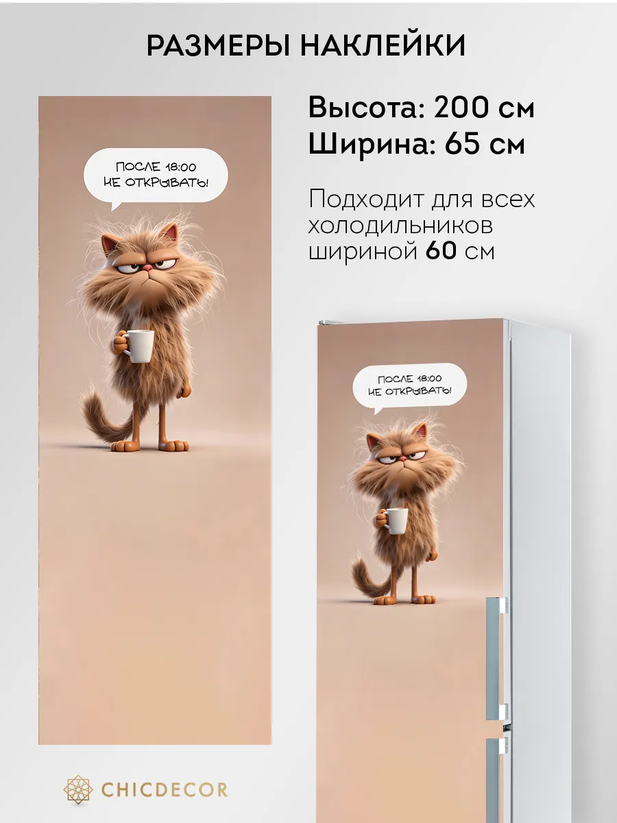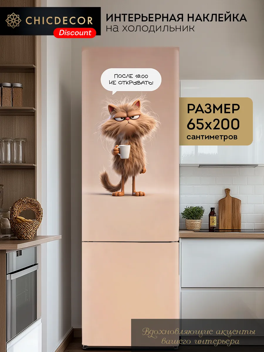 Наклейка на холодильник от CHIC DECOR Discount - это прекрасный способ добавить яркий акцент в интерьер вашей кухни. Большая яркая наклейка станет настоящим украшением вашего холодильника, преобразив его в стильный элемент декора, добавив яркий акцент в декор вашего дома. Изготовленная из высококачественного винила, наклейка проста в нанесении и удалении, не оставляя следов на поверхности. Новая линейка Discount от CHIC DECOR - доступные наклейки без ламинации. Преобразите свою кухню за считанные минуты с яркой и стильной наклейкой на холодильник от CHIC DECOR Discount! Размер 65х200 см идеально подойдет для большинства стандартных холодильников. Наша наклейка изготовлена с использованием японской печати и немецкой пленки, что гарантирует высокое качество изображения, устойчивость к воде и бытовой химии. Внимание! Рекомендуем пользоваться для мытья мягкой тканью! Подробнее о нашем качестве: Японское качество печати: Гарантирует четкость и яркость изображения. Немецкое качество пленки: Обеспечивает долговечность и устойчивость к повреждениям. Бережная упаковка в прочный тубус: Наклейка доедет до вас в целости и сохранности. Обновите интерьер кухни без лишних затрат! Интерьерный декор на холодильник от CHIC DECOR Discount - новый стильный акцент в вашем доме.В наличии идентичные рисунки с ламинацией - такие наклейки не выгорят со временем на солнце и проще в уходе. CHIC DECOR - это стиль, защита и долговечность!