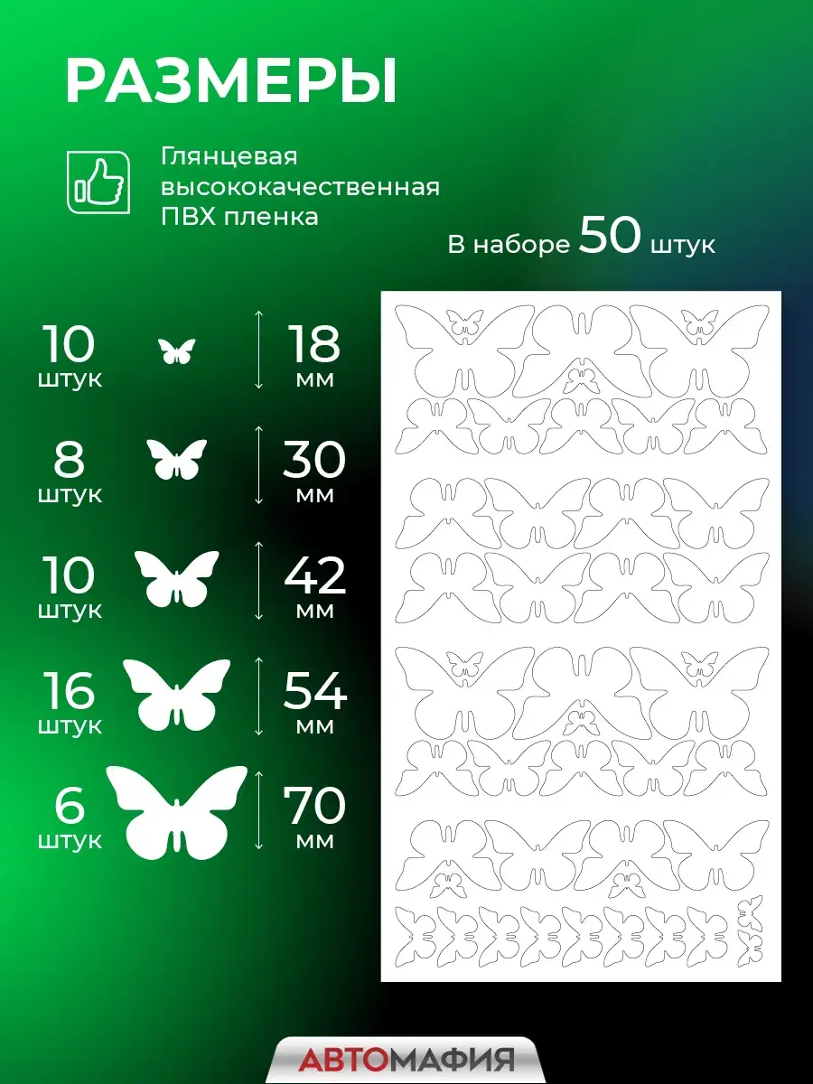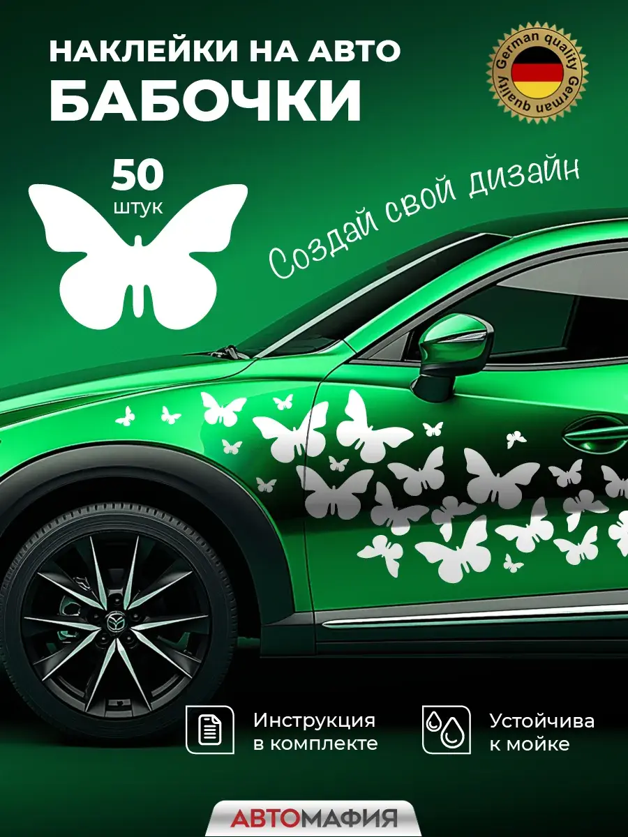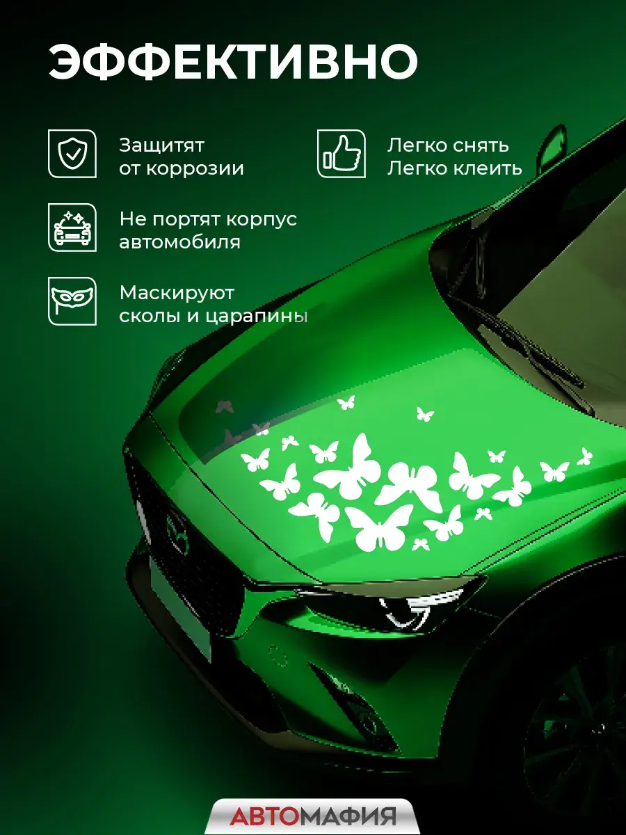 Защитите свой автомобиль стильно! Белые бабочкм от Автомафии это уникальные декоративные элементы с глянцевым эффектом. Придайте своему автомобилю индивидуальность без лишних затрат! Наши наклейки легко крепятся к любому типу поверхности, обеспечивая долговечность использования и защиту кузова благодаря высококачественным материалам. Выделитесь среди других водителей с помощью этого оригинального аксессуара, который подчеркнет вашу креативность и стиль вождения.Наклейка на машину "Бабочки белые" от бренда Автомафия - изысканное и защитное решение для вашего автомобиля. Созданная из высококачественной белой глянцевой плёнки, эта наклейка не только добавит стиль и индивидуальность вашему транспортному средству, но и обеспечит дополнительную защиту от царапин и повреждений. Легко устанавливаемая и долговечная, эта наклейка станет отличным дополнением к любому автомобилю, подчеркивая ваш стиль и внимание к деталям. Белое изображение бабочек придает авто уникальный вид, который будет выделяться в любом месте.Подходит как мужчинам, так и женщинам. Попробуйте новый уровень самовыражения за рулем уже сегодня!
