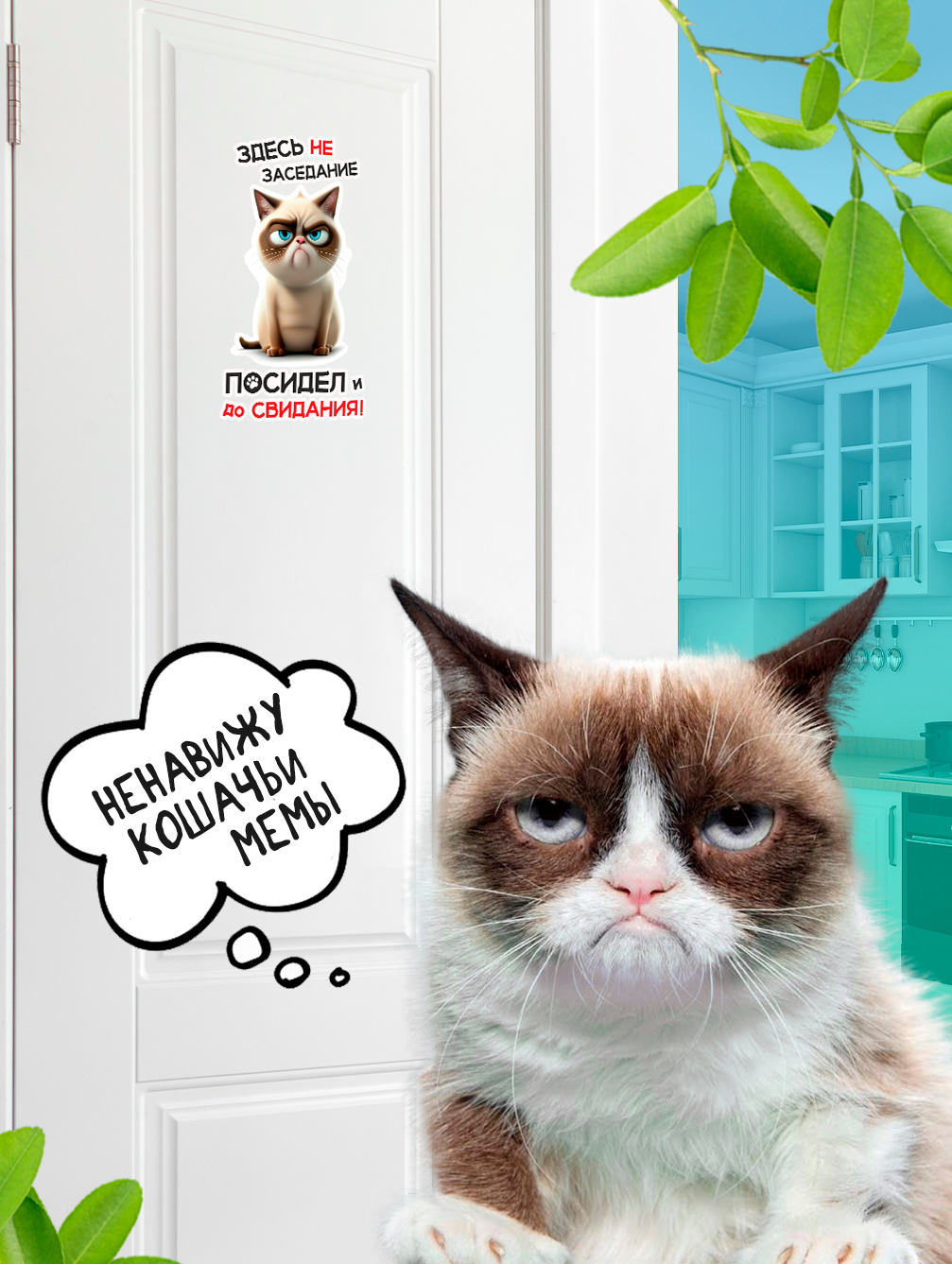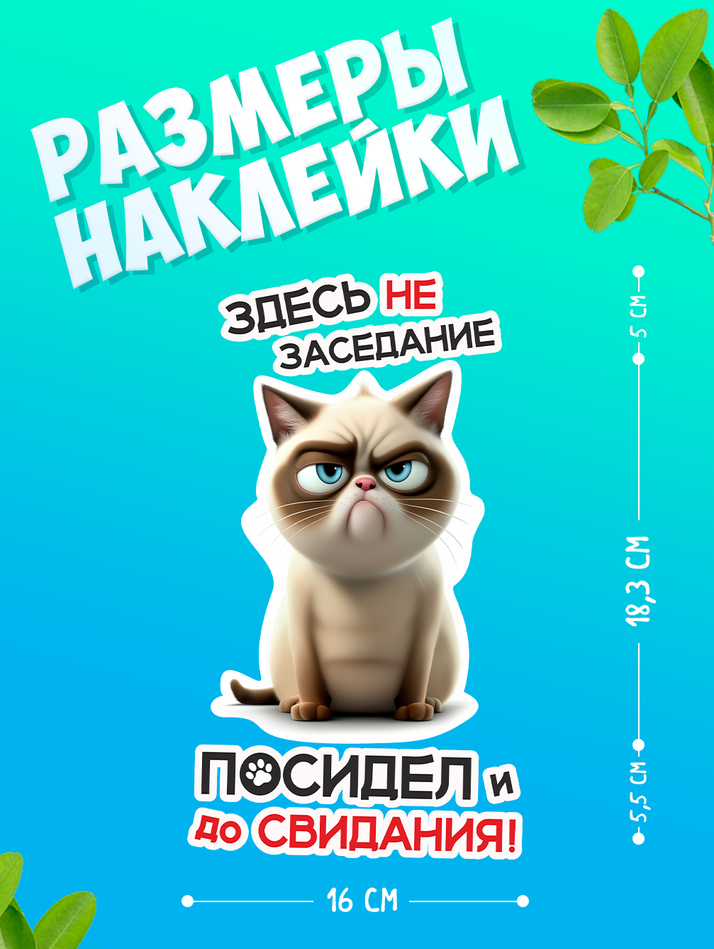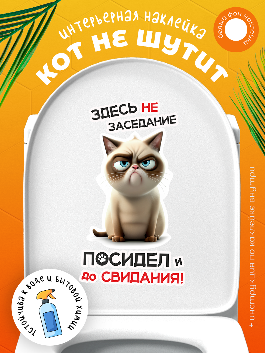 Интерьерная наклейка с забавным милым котом с характером “Здесь не заседание посидел и до свидания” станет ярким и оригинальным украшением интерьера вашего дома.