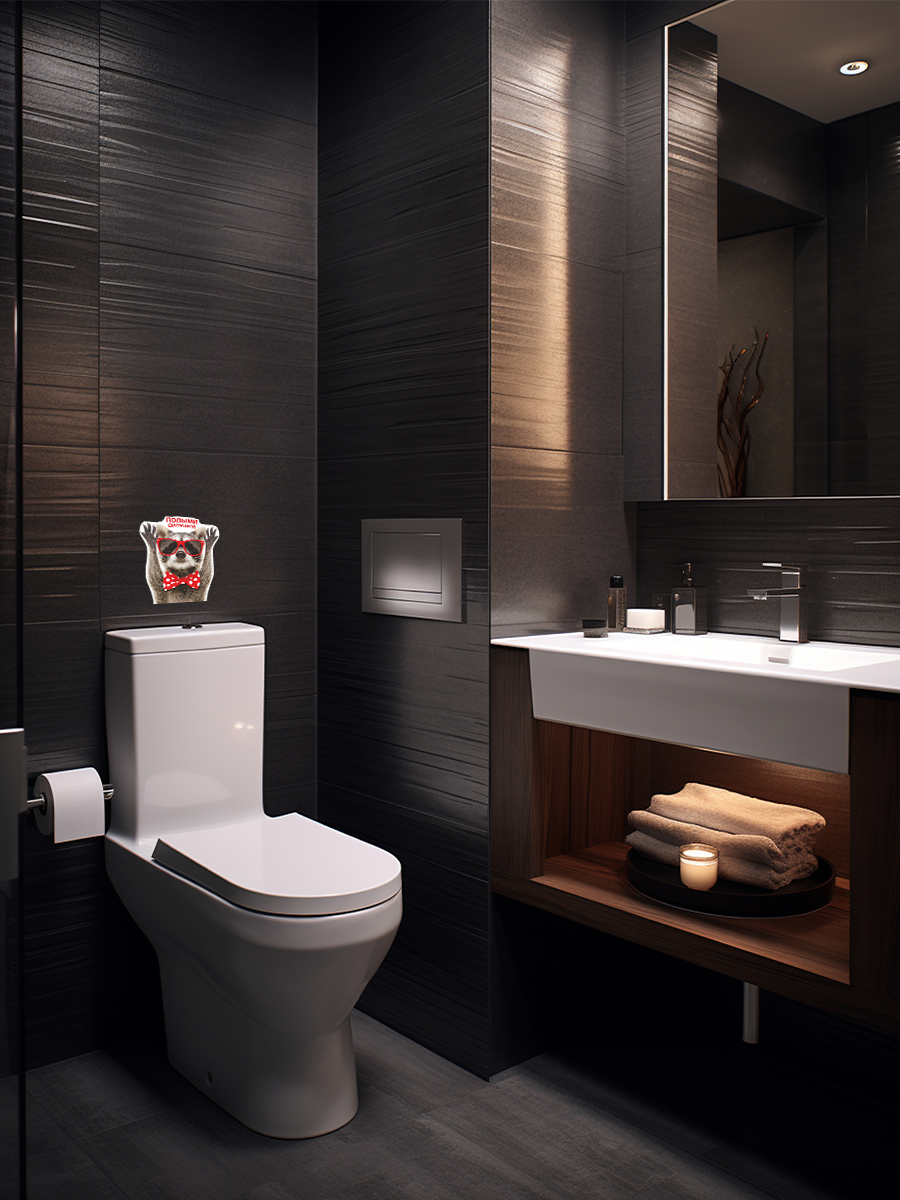 Данную наклейку с изображением енота можно клеить не только на крышку унитаза, но и на холодильник, в ванную комнату, везде, где вам понравится.