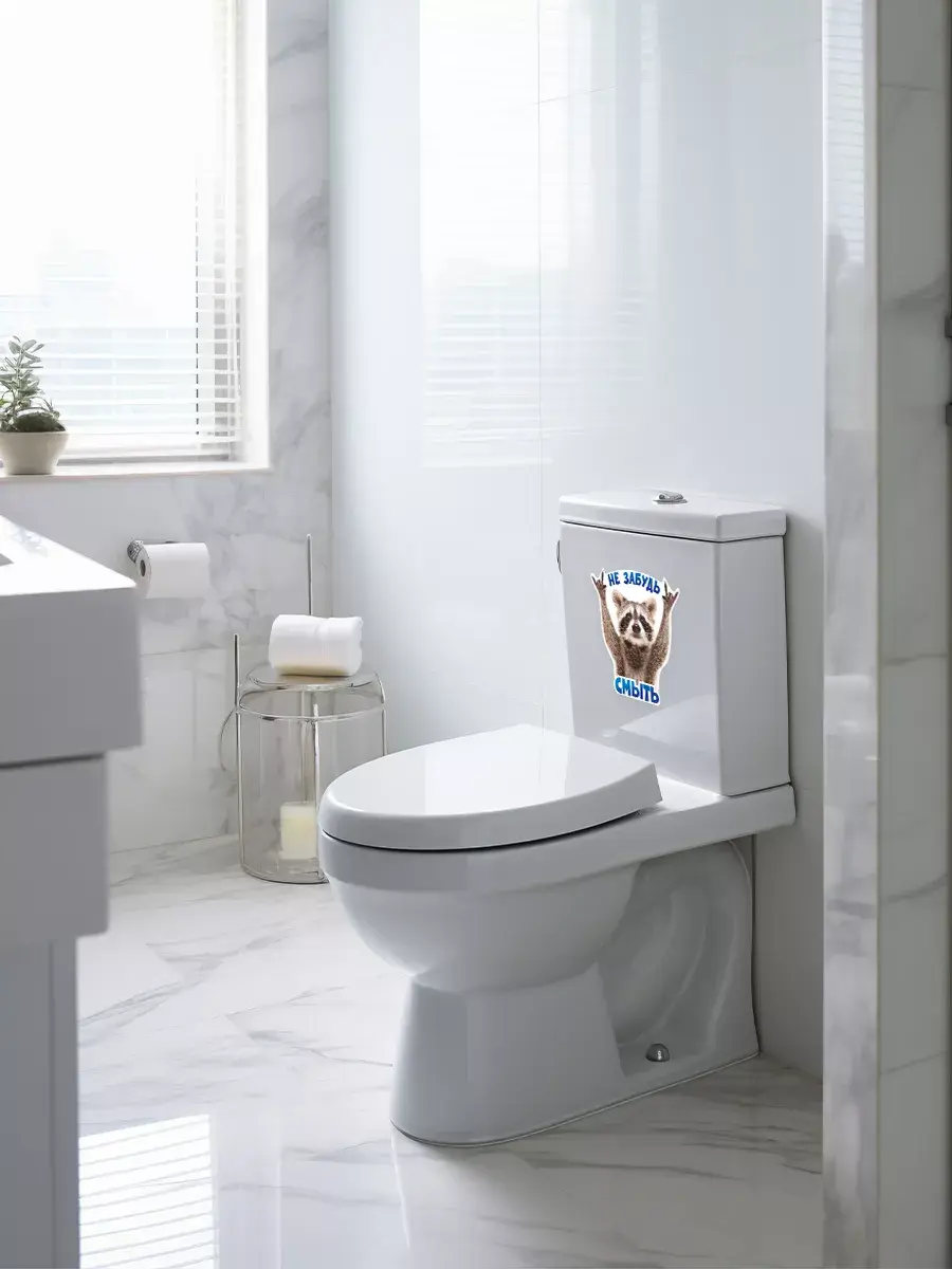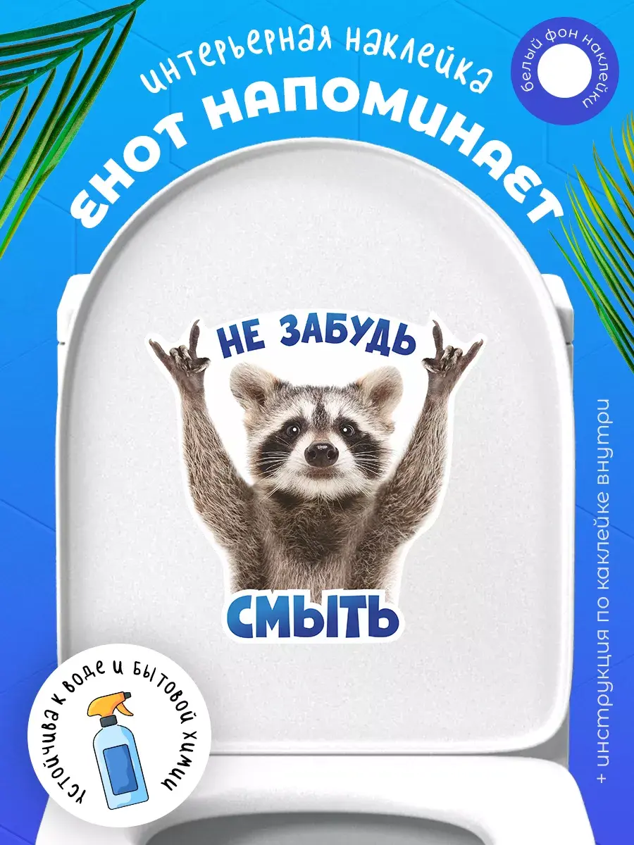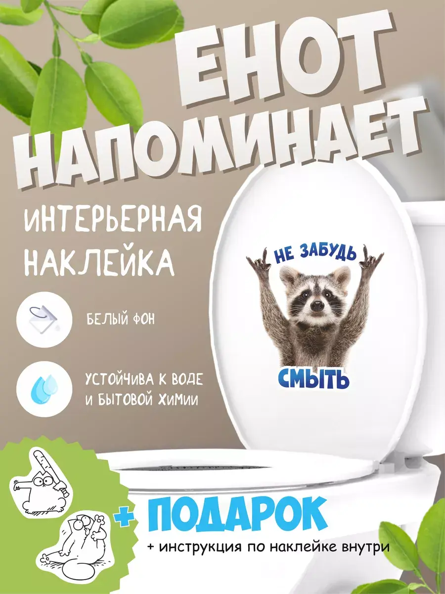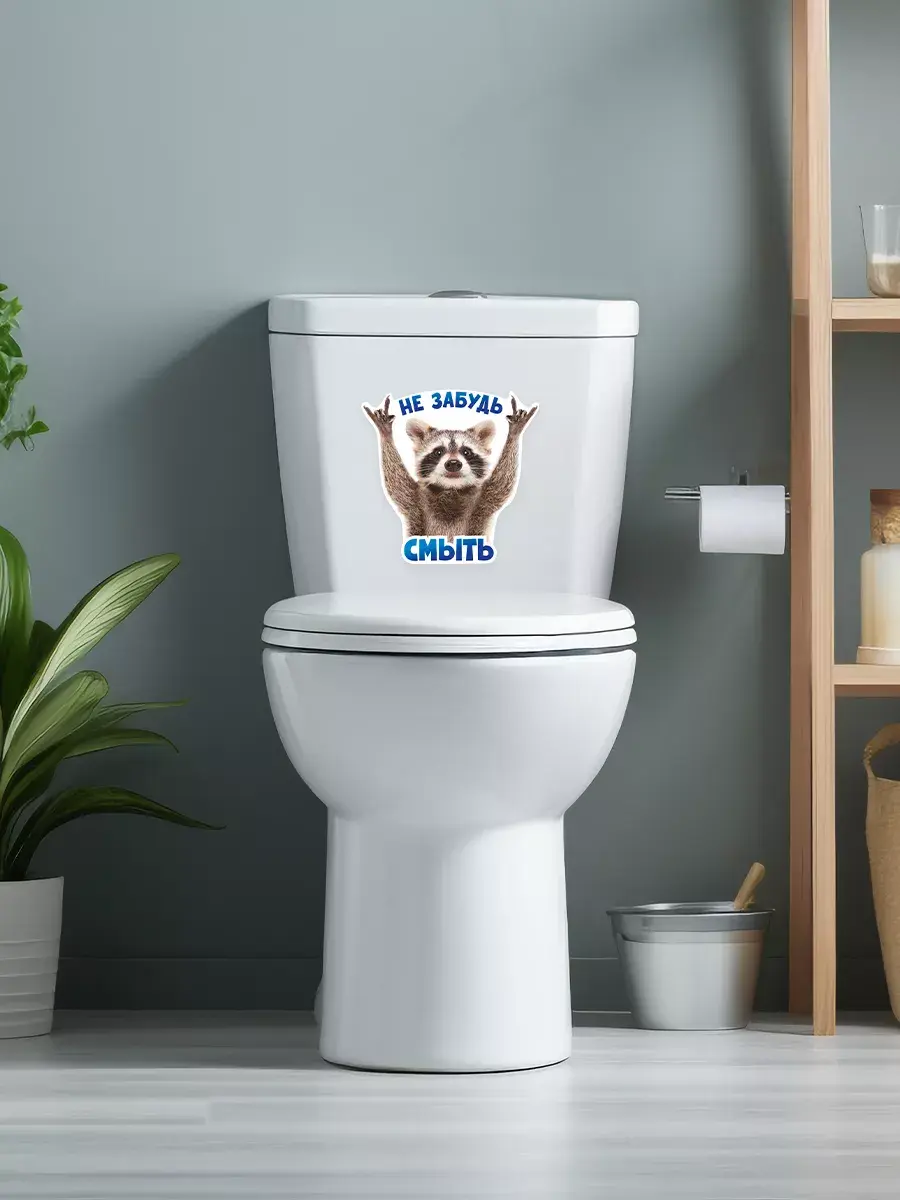Необычный и веселый дизайн наклейки сделает ваш туалет уникальным и привлекательным. Милый енот, который заставляет улыбнуться каждого, будет напоминать о гигиене и порядке в ванной комнате.