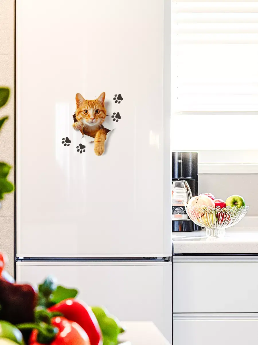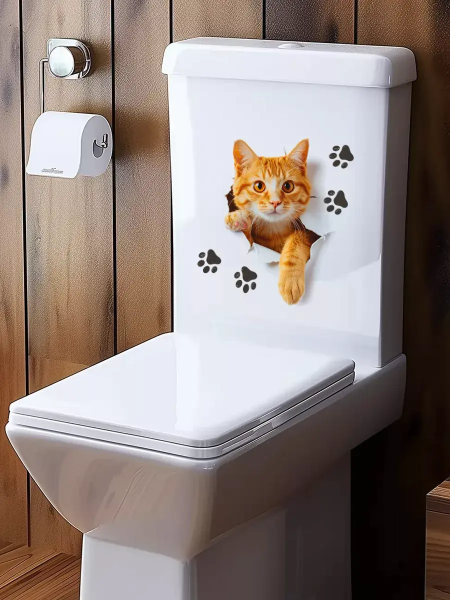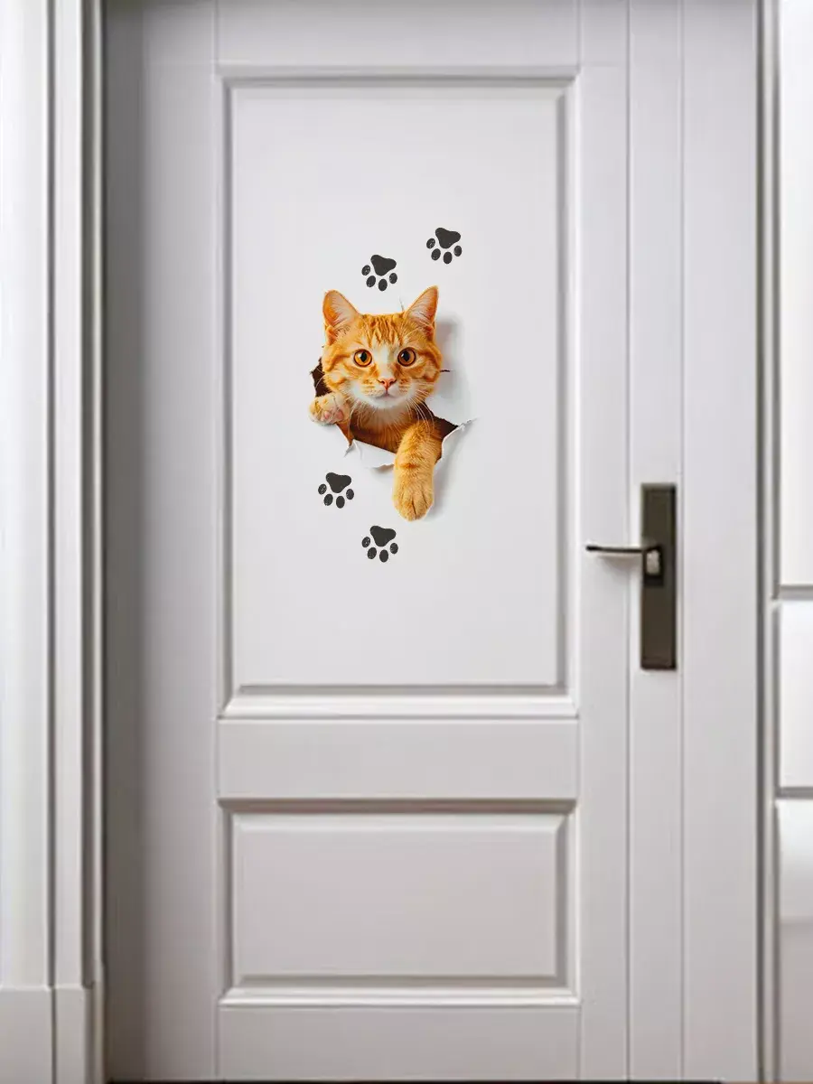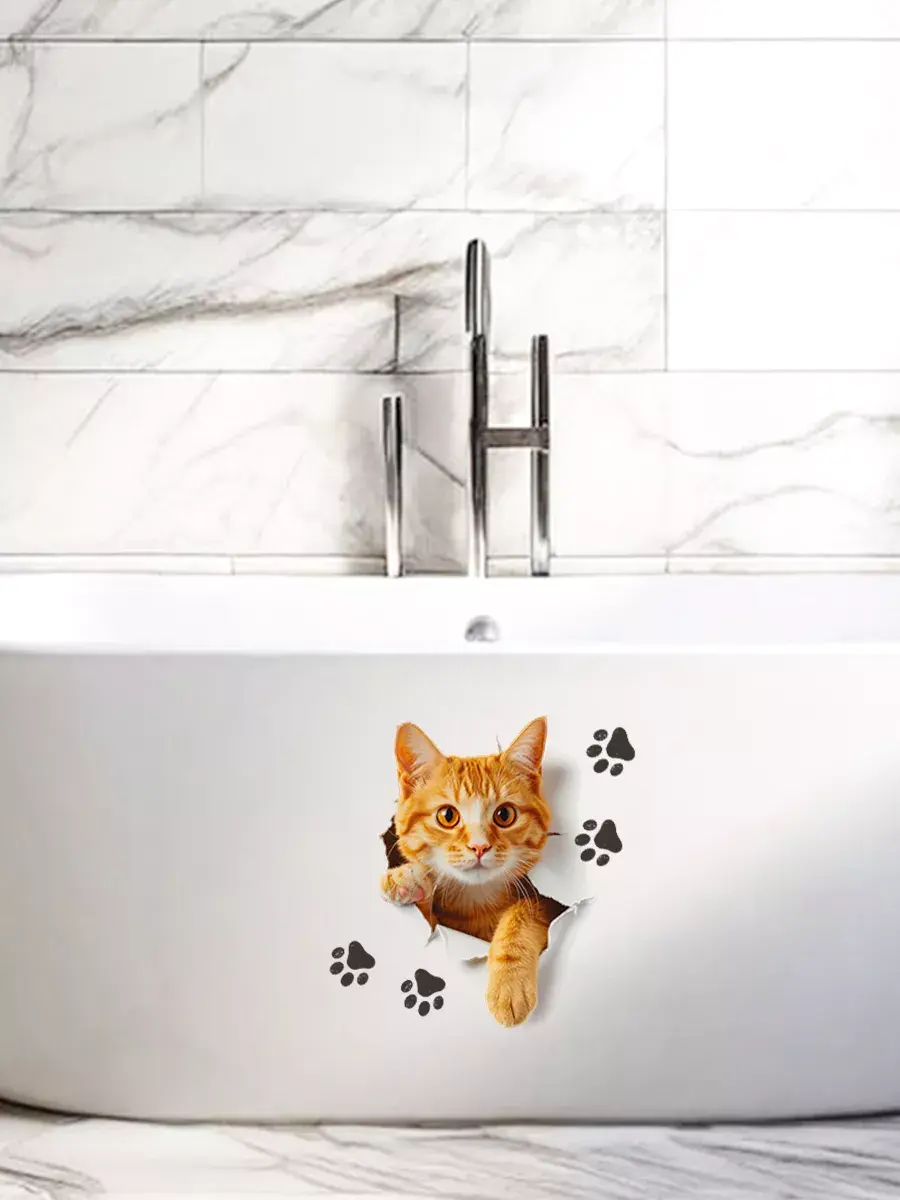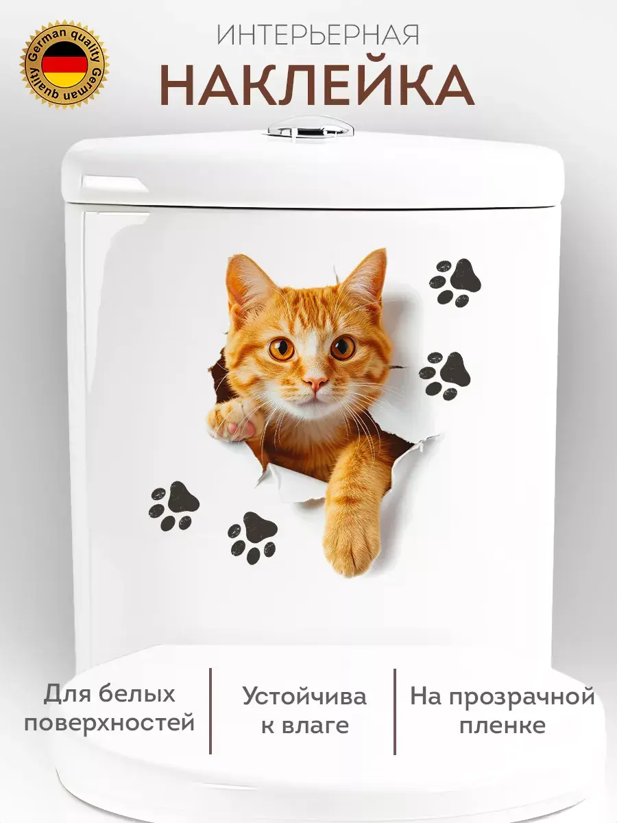 Интерьерная наклейка с котиком для домашнего декора, дизайна интерьера. Можно нанести на любую гладкую поверхность: на стены, плитку, дверь, бачок или крышку унитаза, корпус машины. Напечатана на глянцевой прозрачной пленке, а значит идеально подойдет для светлого автомобиля.