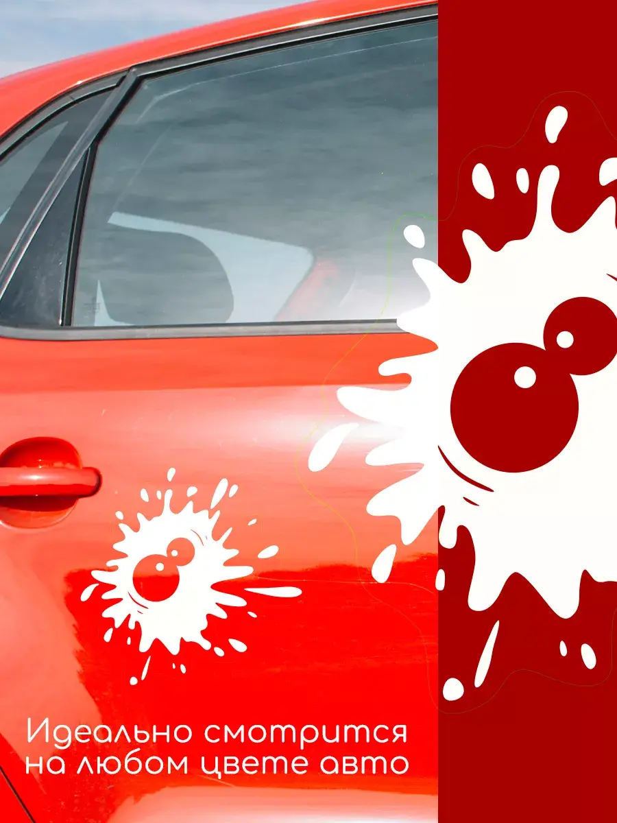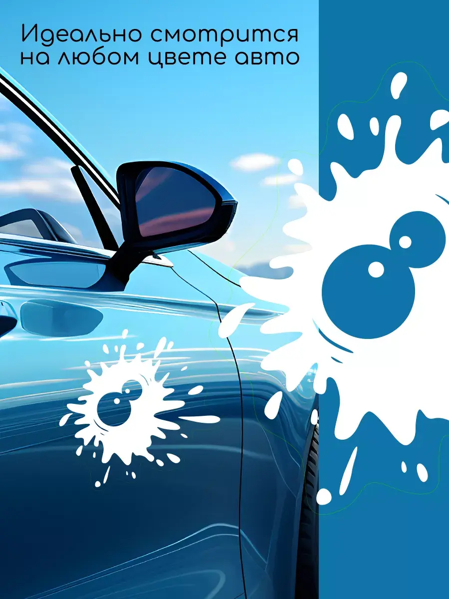 Белая наклейка на авто "Клякса" - это стильный тюниг с помощью простого и стильного стикера для любых марок и моделей автомобилей. Стикер отпечатан способом УФ печати белым цветом, а это значит что он устойчив к солнечным UV-лучам, то есть не выгорит на солнце. Основа - прозрачная глянцевая виниловая пленка - высококачественный материал, который не боится влаги.