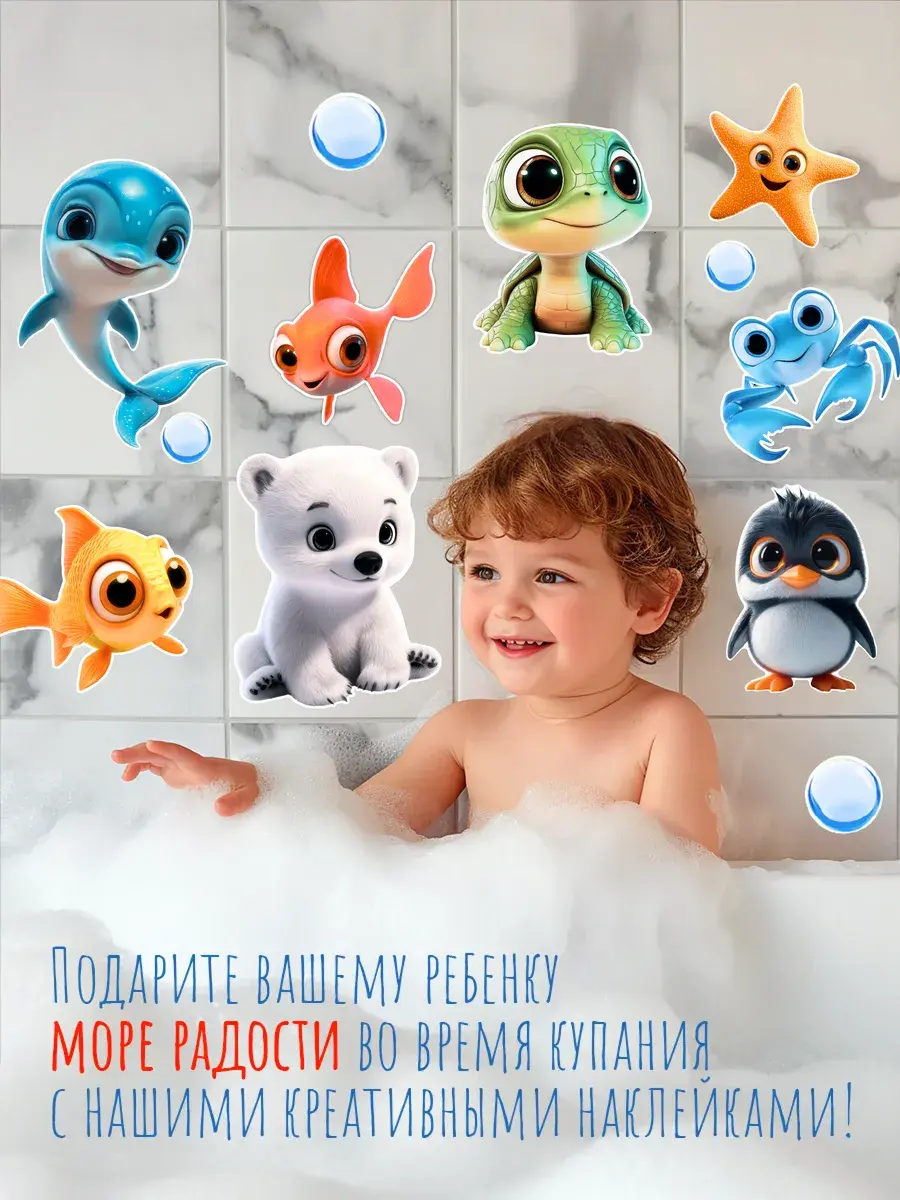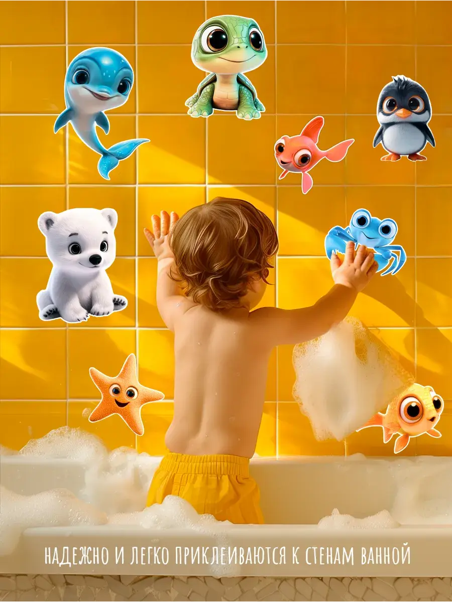 Наклейки детские интерьерные "Обитатели моря" набор от бренда Концепт НН превратят детскую комнату или ванную в сказочный мир. Яркие и красочные наклейки с изображением рыбок, дельфина, черепахи и даже белого медведя, изготовлены из влагостойкой виниловой пленки, что позволяет использовать их в помещениях с повышенной влажностью. Наклейки легко наносятся на любые гладкие поверхности: стены, мебель, кафель. Создайте вместе с ребенком неповторимый дизайн и подарите ему радость от ярких и забавных персонажей морской тематики.