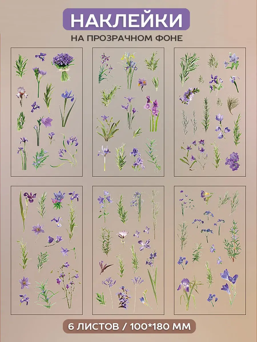 Наклейки флора на прозрачном фоне сиреневые цветы