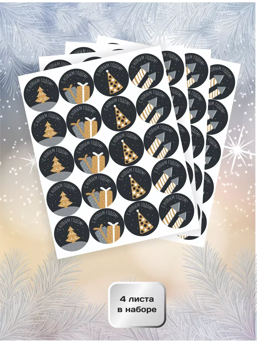 Наклейки новогодние для украшения подарков