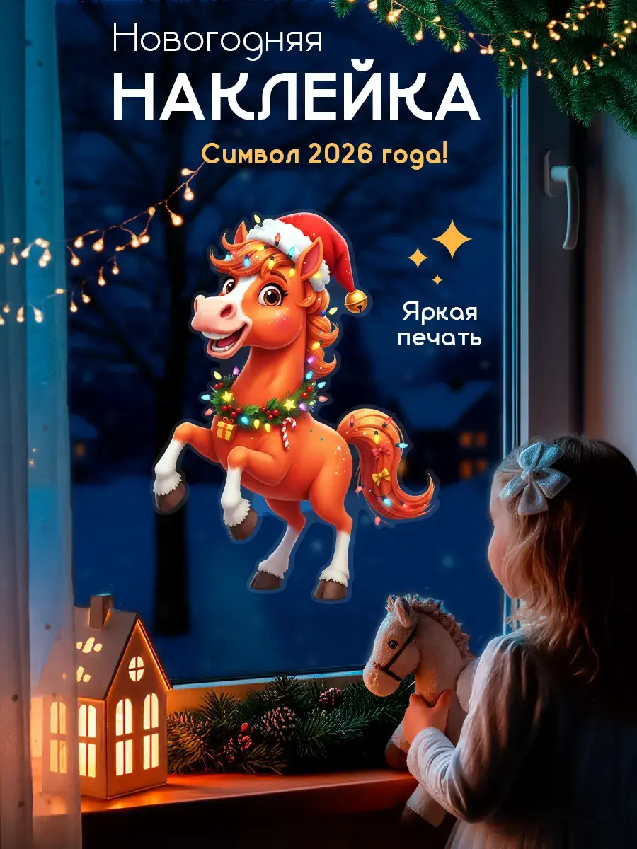 Новогодние наклейки на окна – это отличный способ преобразить ваш дом к 2026 году. Этот декор поможет создать атмосферу праздника и уюта. Элегантные наклейки с изображением лошади – символа года – станут центральным элементом украшения. Наклейте их на окна, двери или стены, чтобы лошадь приносила удачу в новый год.