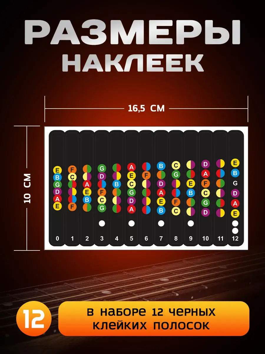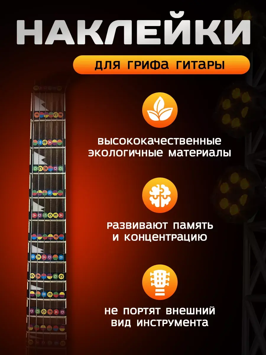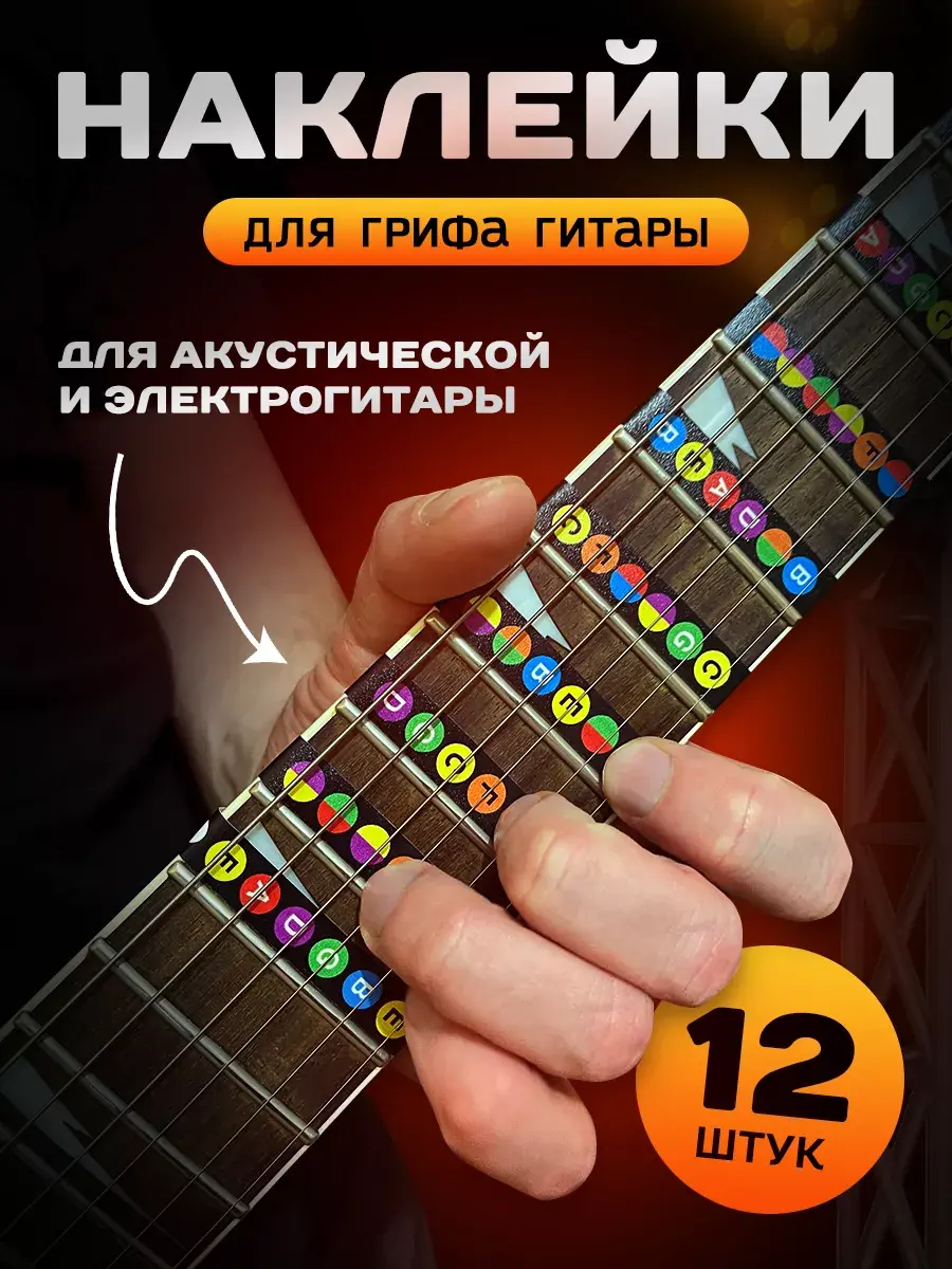 Нотные стикеры шпаргалки для любого типа гитары улучшают понимание музыкальной теории, стимулируют интерес к обучению и способствуют эффективному изучению нот, аккордов и интервалов. Они ускоряют обучение игре на струнных инструментах и помогают запоминать позиции трезвучий. Ноты и аккорды на наклейках помогут начинающим гитаристам быстрее освоить инструмент. Таким образом ноты-подсказки идеально подходят для новичков.