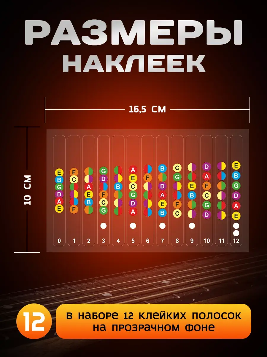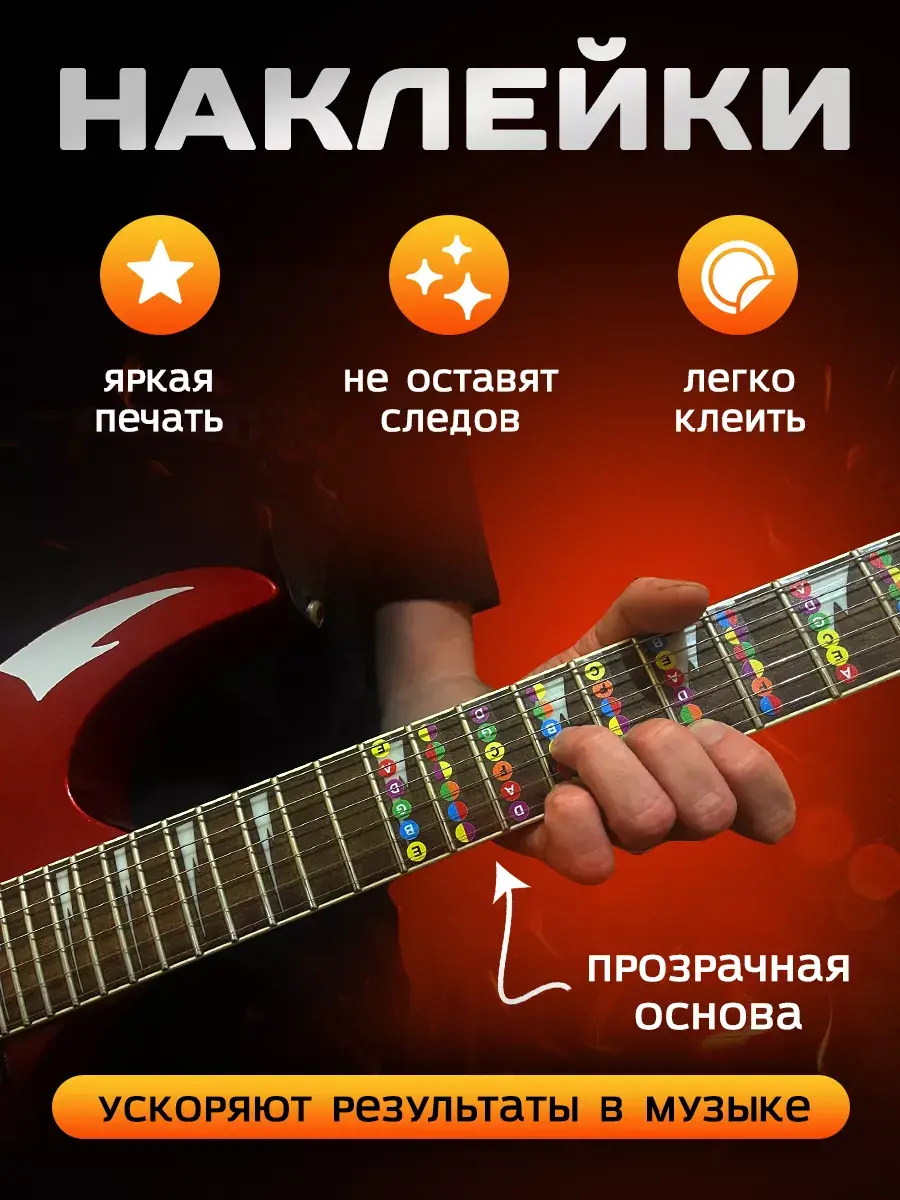 Нотные стикеры шпаргалки на прозрачной основе для любого типа гитары улучшают понимание музыкальной теории, стимулируют интерес к обучению и способствуют эффективному изучению нот, аккордов и интервалов. Они ускоряют обучение игре на струнных инструментах и помогают запоминать позиции трезвучий. Ноты и аккорды на наклейках помогут начинающим гитаристам быстрее освоить инструмент. Таким образом ноты-подсказки идеально подходят для новичков.