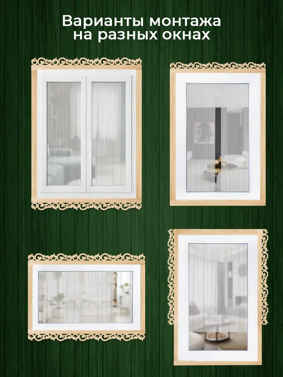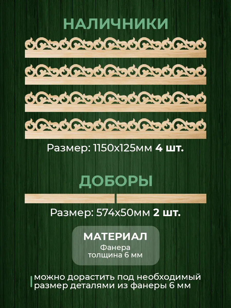 В данном комплекте 6 деталей для оформления для 1 окна. Изготовленные из высококачественной фанеры 6 мм.