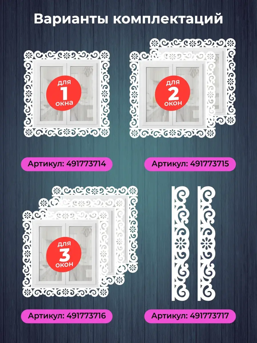 Комплект наличников от АжурФасад - это стильное и практичное решение для оформления оконных проемов фасада вашего деревенского дома. В данном комплекте 16 деталей для оформления для 2 окон. Изготовленные из высококачественного пластика 5 мм, наличники обладают высокой прочностью, устойчивостью к влаге, в отличие от деревянных деталей и ультрафиолетовому излучению. Благодаря своей универсальной конструкции, они идеально подойдут для окон различных размеров. В продаже имеется набор из 2х фигурных фризов для дополнительного наращивания в размерах. Пластиковые наличники легко можно покрасить с помощью аэрозольной краски в любой цвет. Так же можно использовать фигурные детали белыми без дополнительной обработки. Простой монтаж с помощью саморезов и элегантный внешний вид наличников АжурФасад преобразят фасад вашего загородного дома, создавая завершенный и ухоженный образ в лучших традициях русского деревянного зодчества с современными взглядом.