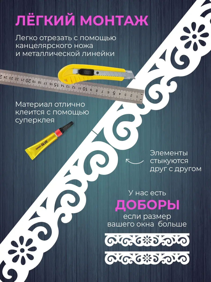 Благодаря своей универсальной конструкции, они идеально подойдут для окон различных размеров. В продаже имеется набор из 2х фигурных фризов для дополнительного наращивания в размерах.