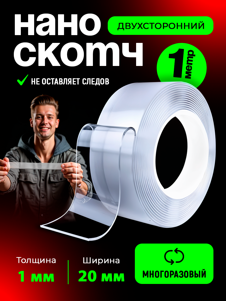 Нано скотч наноскотч многоразовый ширина 2см 1мм 1м