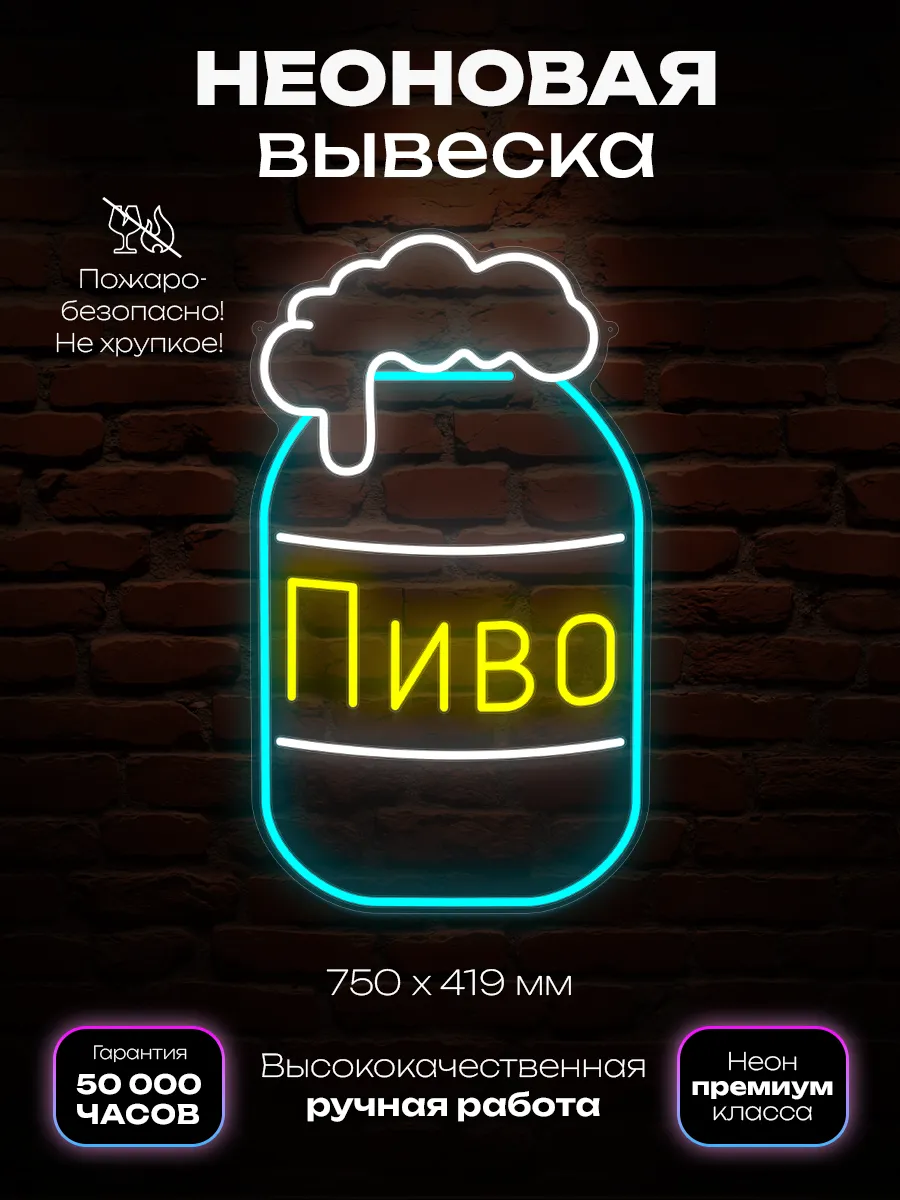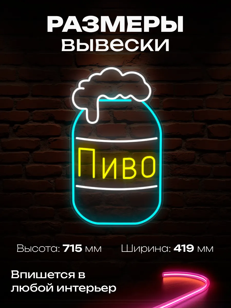 Свет мягкого неона идеально подчеркнёт вашу страсть к пиву, а её яркость привлечёт внимание и создаст невероятную энергетику. Вывеска мгновенно напомнит вам о радостных моментах жаркого лета.