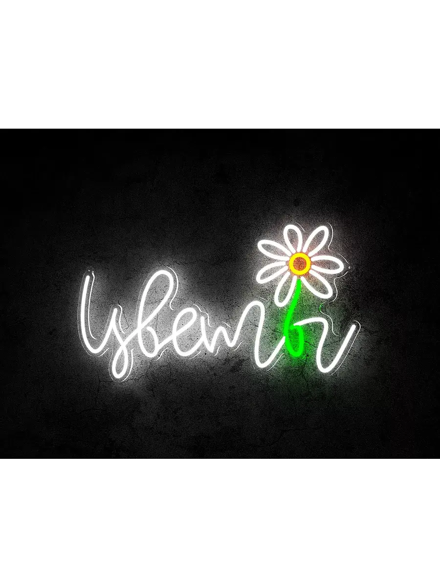 Неоновая вывеска со словом "цветы" и стилизованной ромашкой - это прекрасный способ добавить яркий акцент в интерьер флориста. Такая световая надпись подчеркнет красоту, стиль и оригинальность сашего салона. Она будет гармонично смотреться в любом интерьере и станет ярким акцентом, привлекающим внимание клиентов. Пространство магазина или салона флориста с подсветкой неоном станет еще более уютным и стильным!