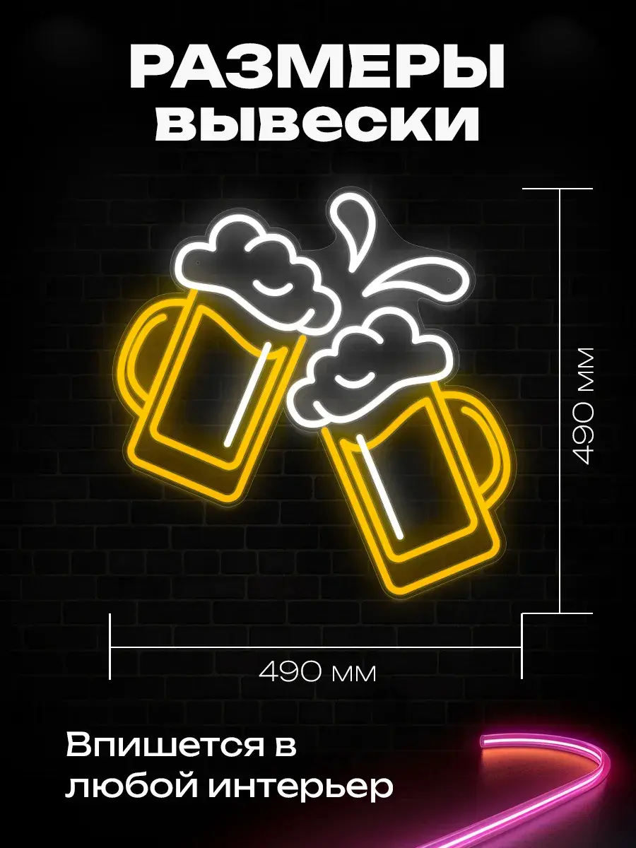 Превратите свое пространство в уютный уголок для ценителей пенного с неоновой вывеской "Две кружки пива" – это не просто светильник настенный, а эффектный элемент декора, который подчеркнет индивидуальность вашего заведения или создаст атмосферу дружеских посиделок дома.