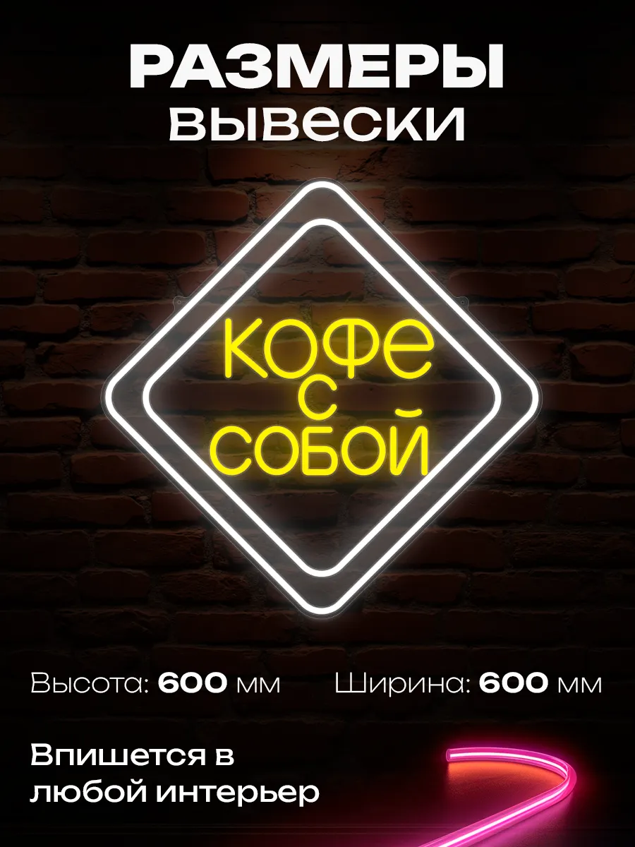 Неоновая вывеска Кофе с собой может быть использована не только в качестве вывески, но и как элемент декора внутри заведения. Он станет отличным акцентом на стене, полке или даже на барной стойке. Такая вывеска будет привлекать внимание посетителей и создавать уютную атмосферу.