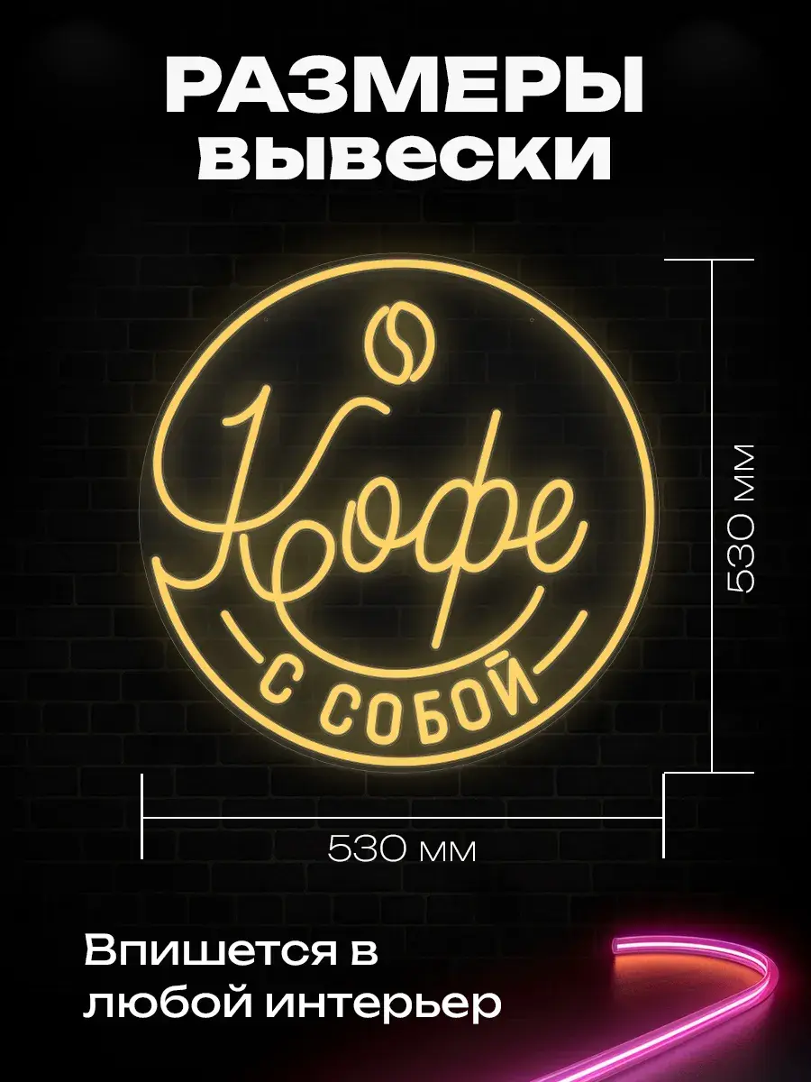 Неоновая вывеска "Кофе с собой" – стильное решение для бизнеса и уютного интерьера