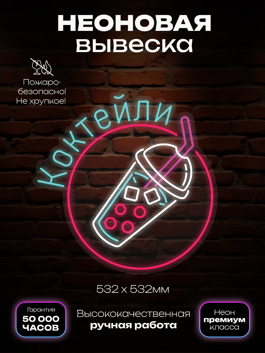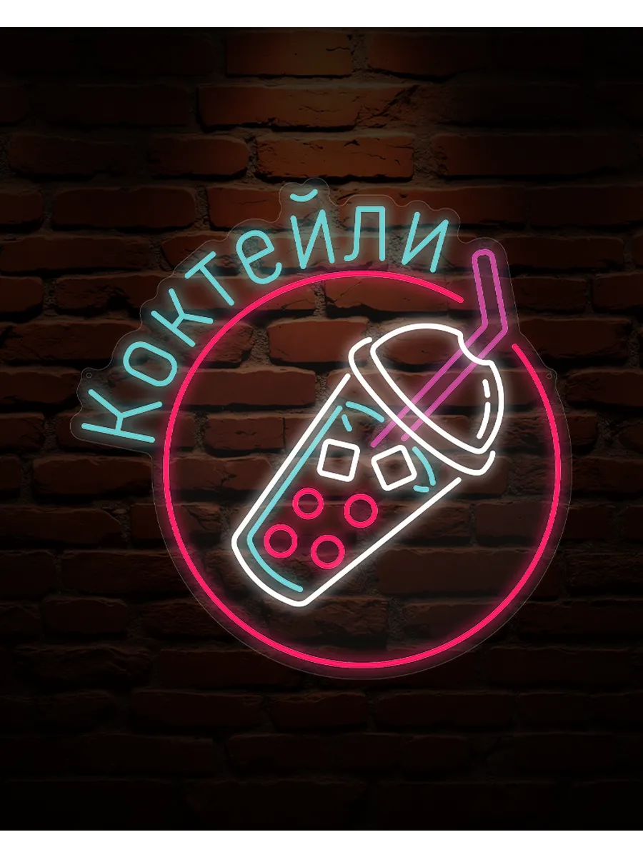 Вывеска выполнена из качественных материалов, обеспечивающих яркое и устойчивое свечение неона в тёмное время суток. Она привлечёт внимание прохожих и создаст неповторимую атмосферу в вашем заведении.