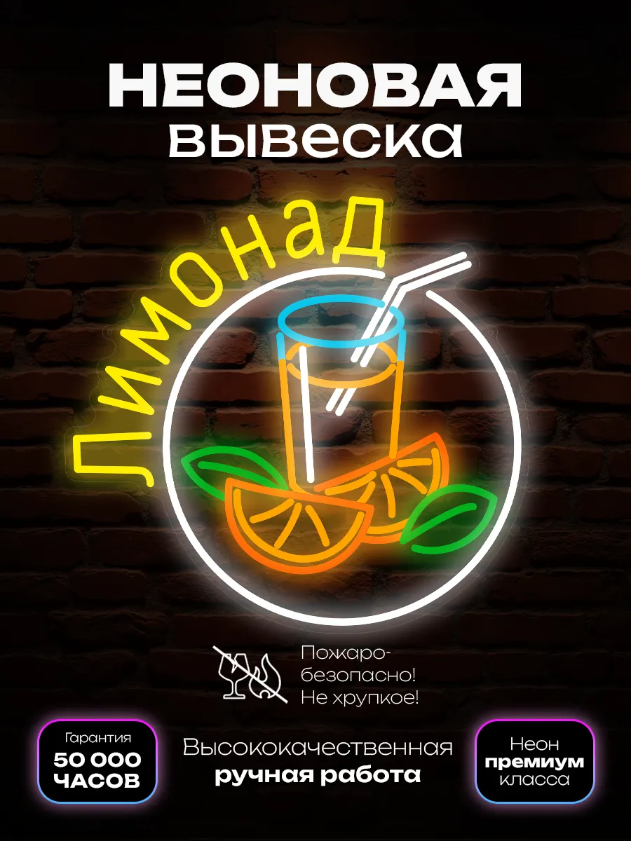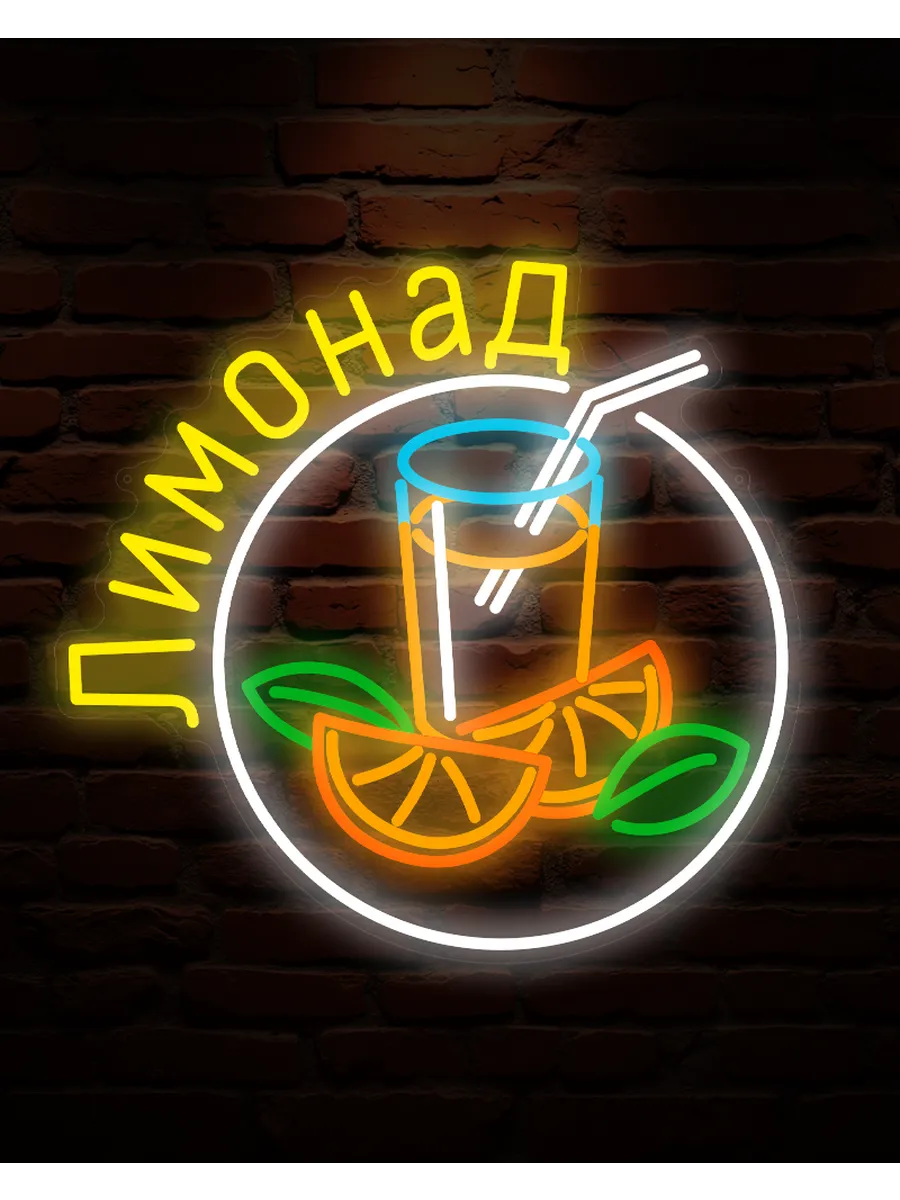 Вывеска с изображением лимонада станет ярким акцентом в интерьере вашего бара, ночного клуба или зоны отдыха. Её яркий апельсиновый и желтый оттенки напомнят о вкусности летнего охлаждающего лимонада.