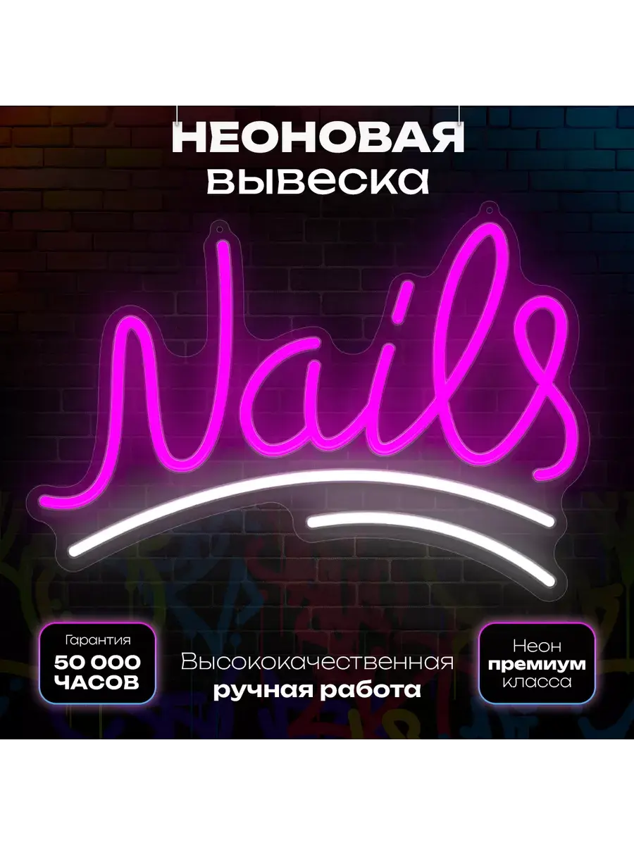 В заключение, неоновая вывеска “Nails” (Ногти) - это стильное и функциональное решение для тех, кто хочет создать атмосферу уюта, красоты и профессионализма.