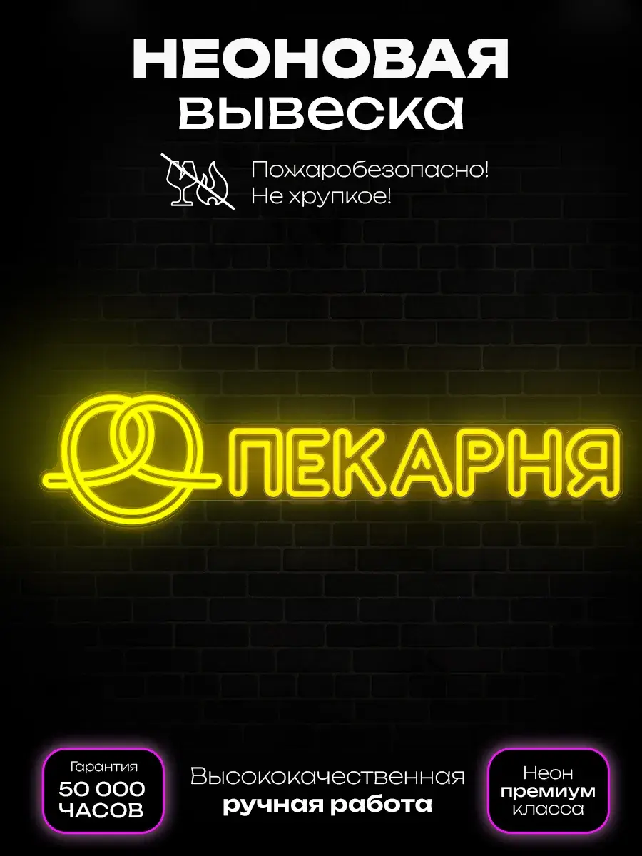 Неоновая вывеска "Пекарня" — создайте уютную атмосферу и привлекайте клиентов!