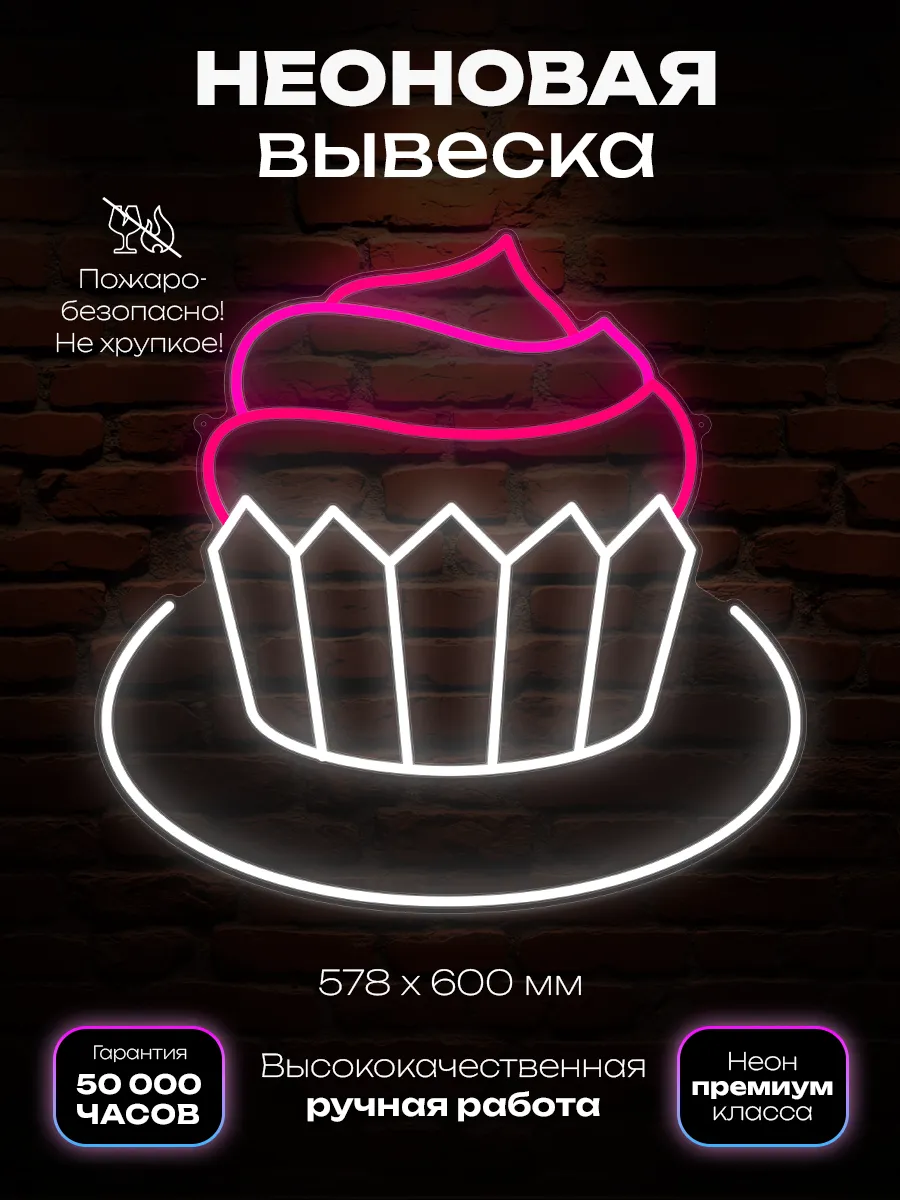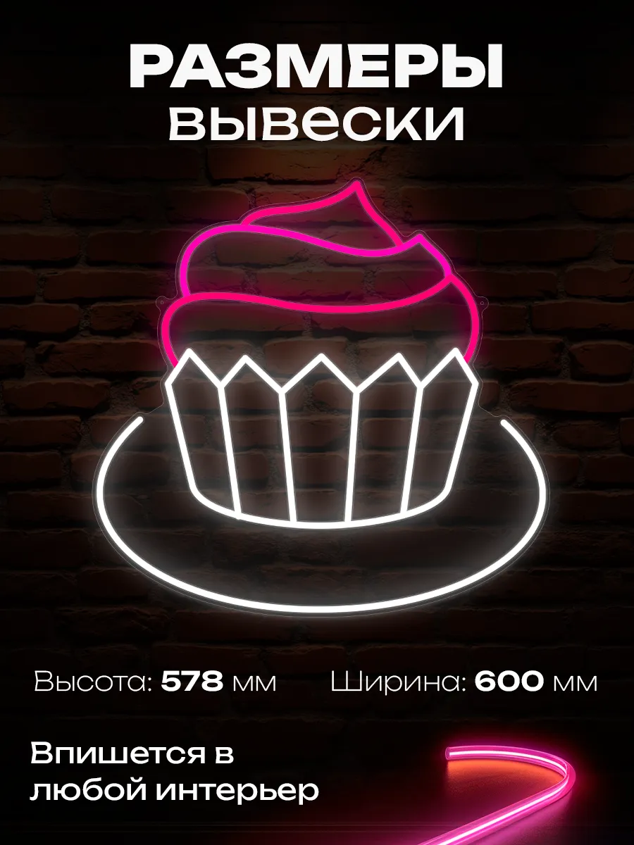 Данный вариант вывески станет эффективным инструментом для повышения узнаваемости кафе, вывода новой кондитерской продукции, а также обозначения тематических зон в торговых точках. Неоновая конструкция незаменима для привлечения внимания к секции пирожных и тортов, создавая запоминающийся визуальный акцент на стене. Быстрая установка, минимальное энергопотребление и яркая неоновая подсветка делают эту вывеску оптимальным выбором для современных пекарен и кондитерских.