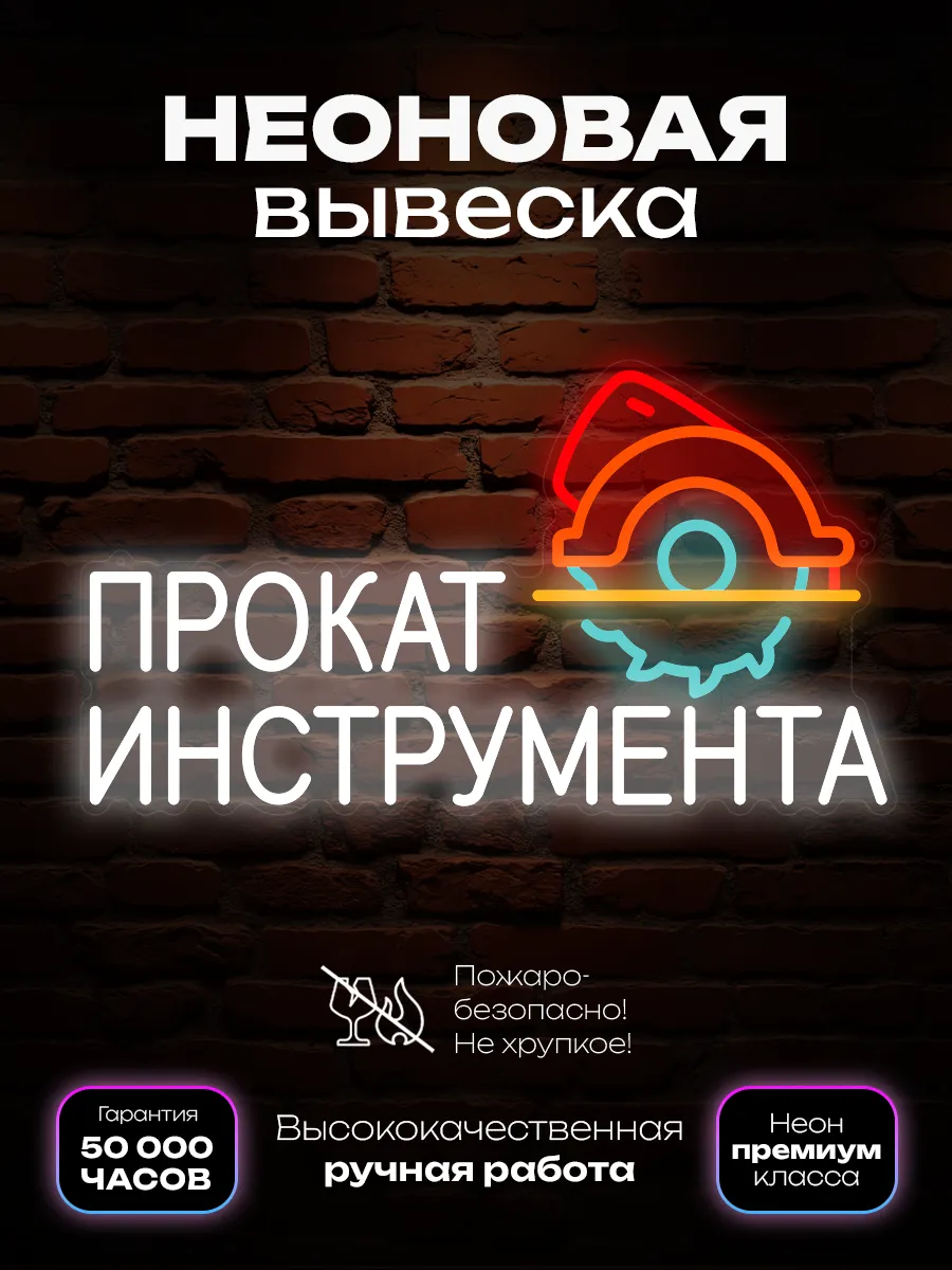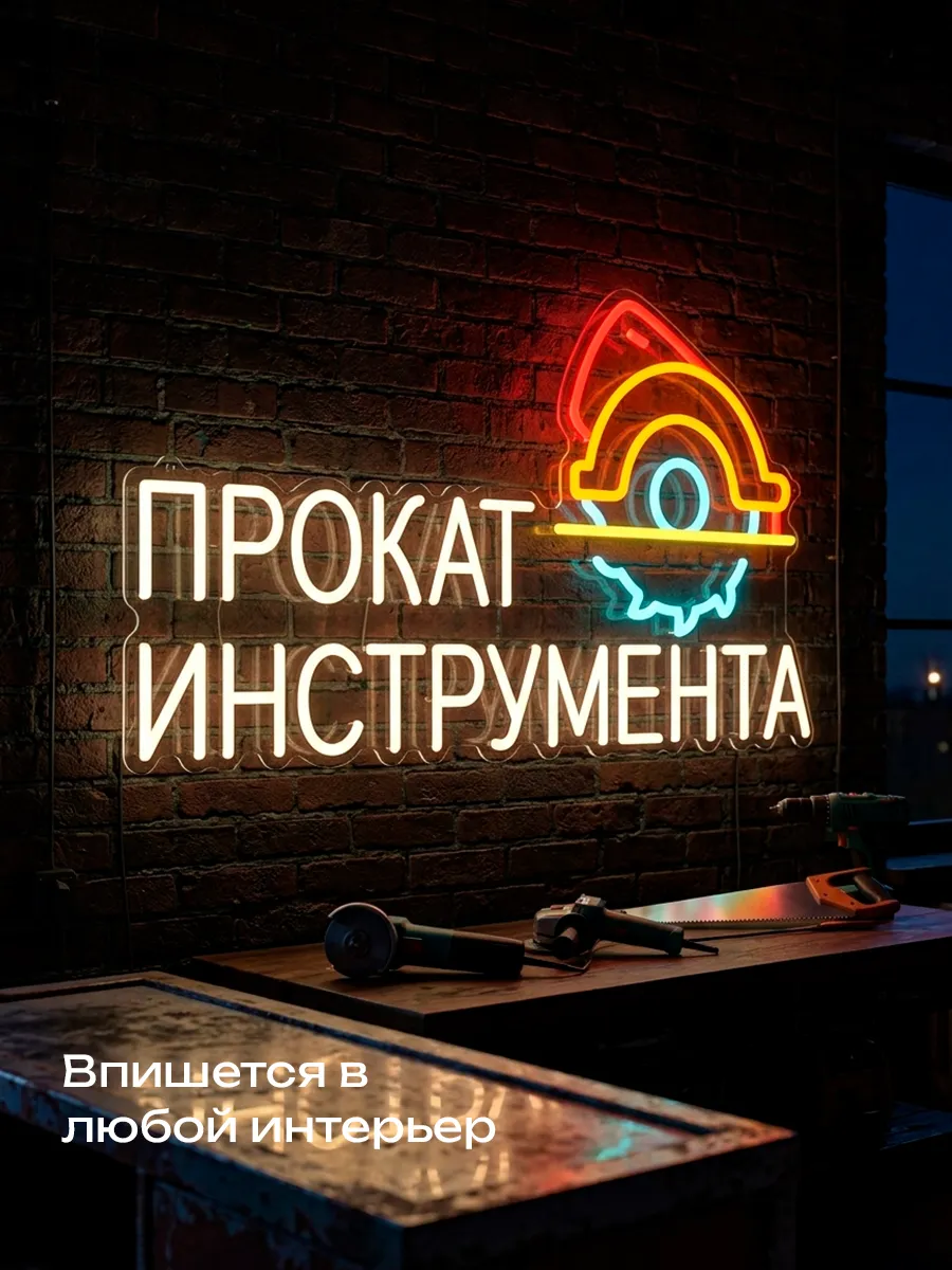 Неоновая вывеска «Прокат инструмента» — это не только информационный элемент, но и стильный акцент, который поможет вашему бизнесу выделиться из толпы. Будьте заметными и привлекательными для своих клиентов с этой яркой и современной вывеской.