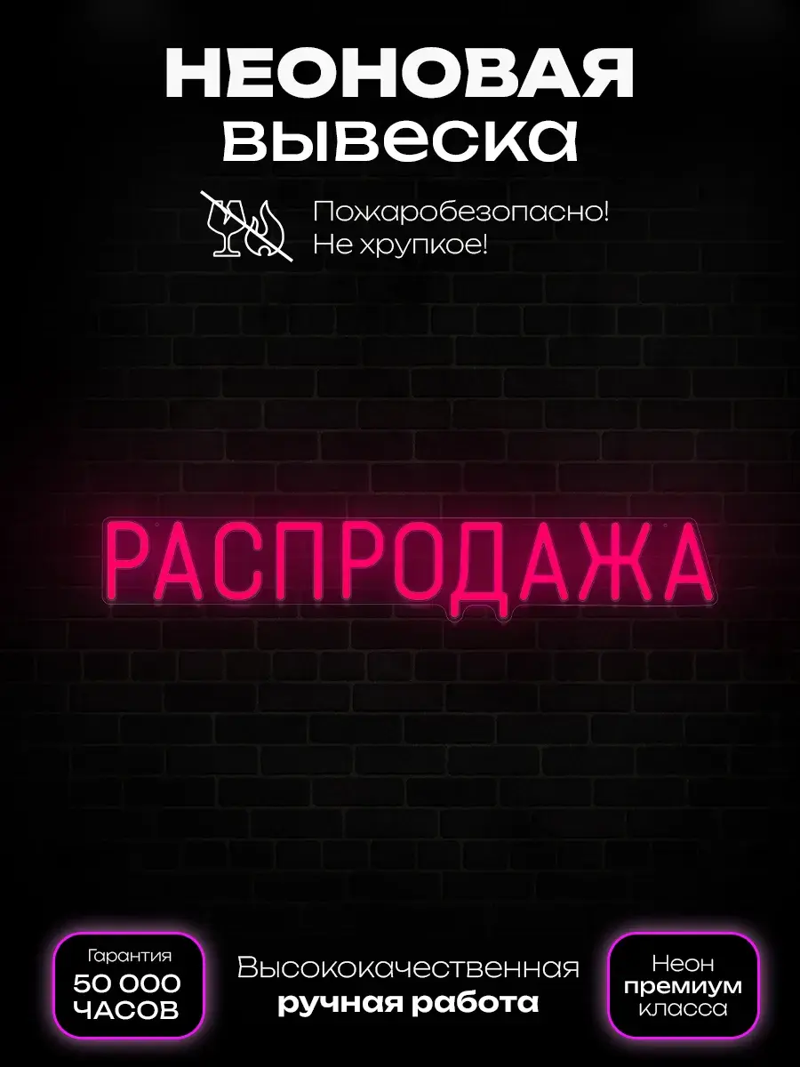 Неоновая вывеска «Распродажа» от Neon Led — это идеальное решение для привлечения внимания покупателей в вашем магазине. Она рассчитана на использование в торговых точках и станет незаменимым инструментом для повышения продаж и создания уникальной атмосферы. Светодиодная вывеска выполнена из высококачественных материалов, что делает её долговечной. Благодаря яркому неоновому свечению она заметна издалека, что позволяет выделить вашу торговую точку среди конкурентов и привлечь больше посетителей. Вывеска проста в установке и эксплуатации. Компактные размеры и лёгкий вес позволяют разместить её в любом удобном месте: витрине магазина, прилавке или входной зоне. Высокая энергоэффективность светодиодов обеспечивает экономное потребление электроэнергии. Эта светодиодная вывеска станет незаменимым аксессуаром для магазинов, организующих акции и распродажи. Она идеально дополнит любой интерьер и поможет создать атмосферу активных продаж. Удобный монтаж и высокая надёжность делают этот товар отличным выбором для любой торговой точки. Если вы ищете способ эффективно привлечь внимание клиентов и повысить продажи, неоновая вывеска «Распродажа» от Neon Led — именно то, что вам нужно. Купите эту светодиодную вывеску для магазина и ощутите все преимущества её использования! Пусть каждый ваш клиент точно знает, когда у вас проходит распродажа благодаря яркой и стильной неоновой вывеске от Neon Led. Наши вывески изготовлены из качественных и долговечных материалов, которые способны выдерживать различные нагрузки, включая температуру и физическое воздействие. Благодаря этому они сохранят свой первозданный вид на протяжении многих лет. Вывеска изготовлена на основе монолитного поликарбоната, что делает её устойчивой к температуре, негорючей и пожаробезопасной. Светодиодная лента обеспечивает яркое и энергоэффективное освещение. Вывеска легко монтируется на стену или подвешивается с помощью тросика. Внушительный размер вывески обеспечивает максимальную видимость издалека. Идеально подходит для фотостудий, свадеб, вечеринок, баров, спален и других мест, где требуется яркое и стильное освещение.
