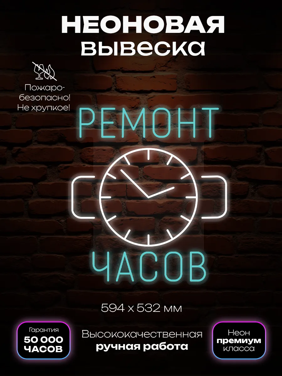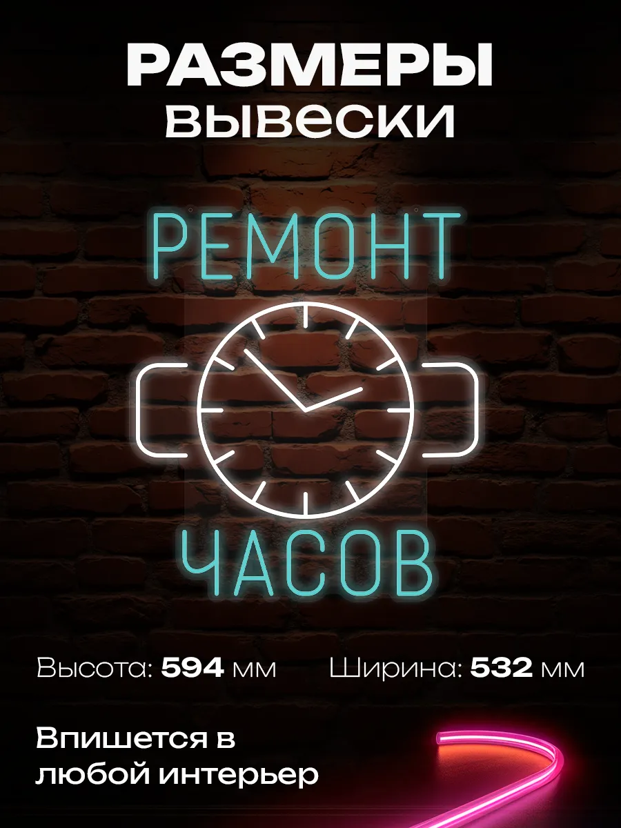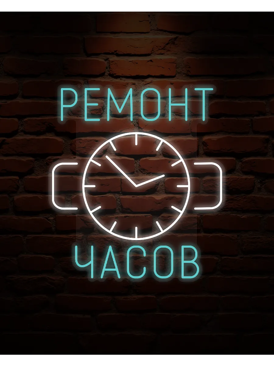 Неоновая вывеска с надписью «Ремонт часов» — эффективное решение для привлечения внимания клиентов в сфере технического обслуживания и продаж. Яркая и стильная неоновая подсветка instantly выделяет пространство, улучшает визуальное восприятие торгового отдела, магазина или мастерской, специализирующихся на ремонте часов. Современный дизайн органично вписывается в различные интерьеры, создавая привлекательный акцент на стену или в окно.