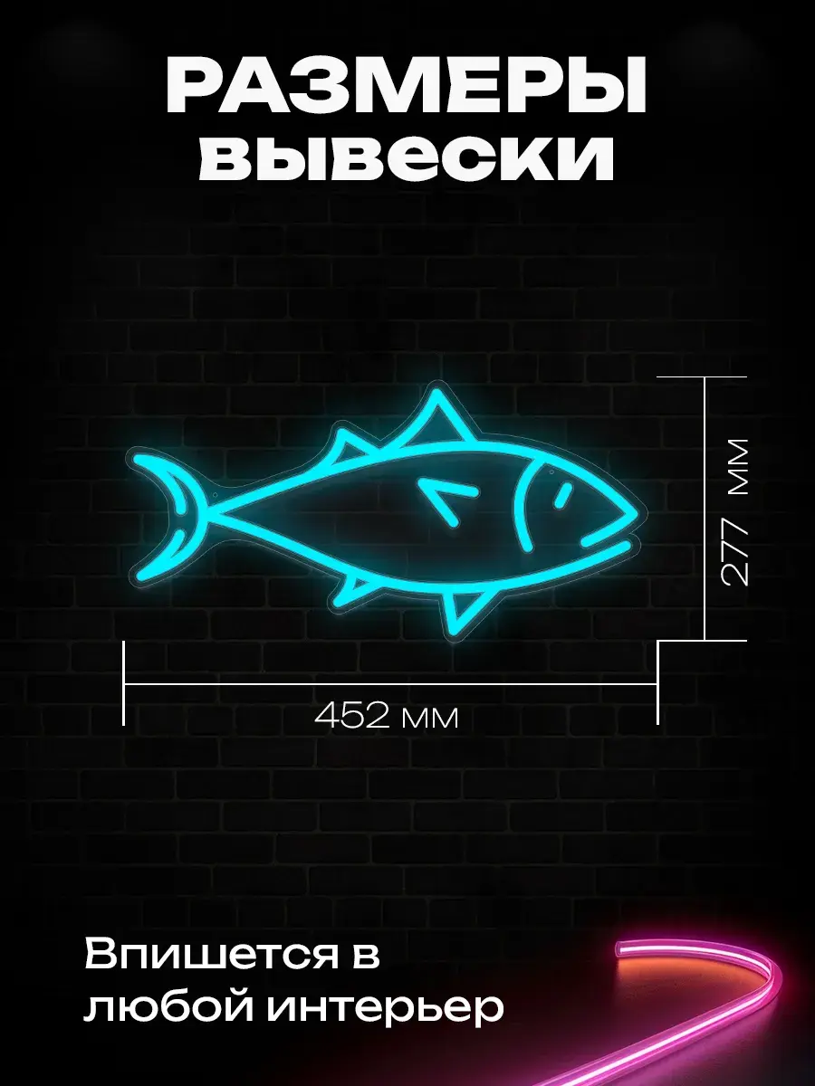 Оживите пространство с неоновой вывеской "Рыбка" – это не просто светильник настенный, а настоящее произведение искусства, которое создаст атмосферу подводного царства в вашем доме или привлечет внимание клиентов в заведении.