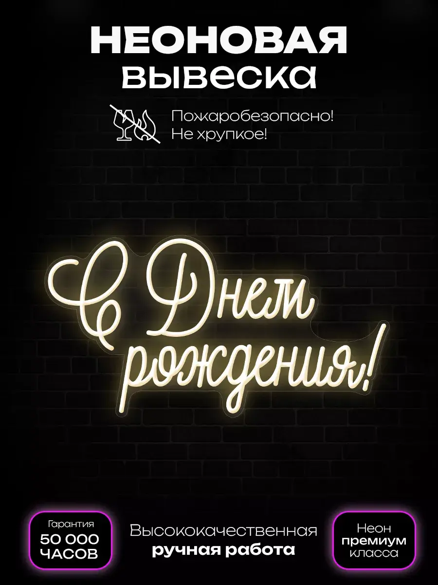 Неоновая вывеска "С Днем рождения!" - яркое и красочное украшение для любого праздника! Сияющие неоновые буквы и фоны создают праздничное настроение и привлекают внимание гостей. Эта вывеска станет отличным дополнением к любому дню рождения, добавляя веселье и радость к вашему празднику. Индивидуальный дизайн и подсветка создадут привлекательный и уютный вид в любом интерьере. Светильник оснащён светодиодной лентой, которая обеспечивает яркий и энергоэффективный свет. Неоновые яркие и сочные надписи становятся всё более популярными в дизайне интерьера. Эта лампа станет отличным выбором для создания неповторимой атмосферы. Подарите себе и своим близким незабываемый декор, который будет светиться и радовать глаза.
