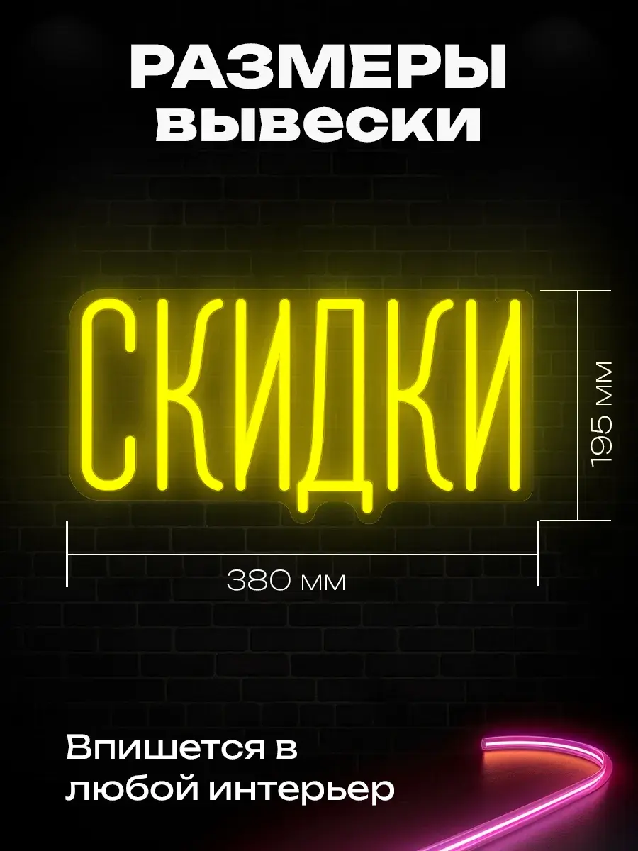 Неоновая вывеска «Скидки» от Neon Led — это идеальное решение для привлечения внимания покупателей в вашем магазине. Она рассчитана на использование в торговых точках и станет незаменимым инструментом для повышения продаж и создания уникальной атмосферы.