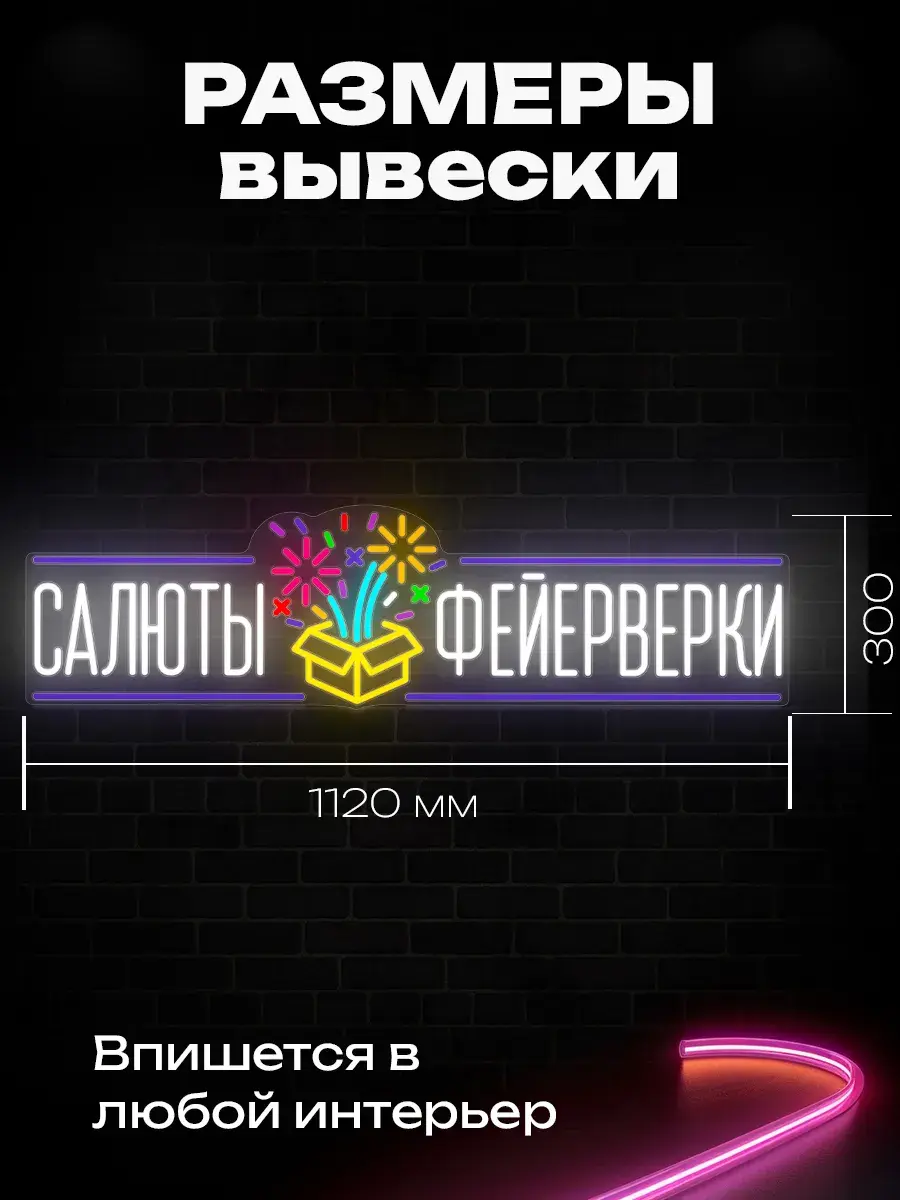 С помощью неоновой вывески "Салюты Фейерверки" вы создадите не только стильный и яркий образ вашего бизнеса, но и уютную атмосферу, побуждающую клиентов проводить больше времени в вашем магазине.