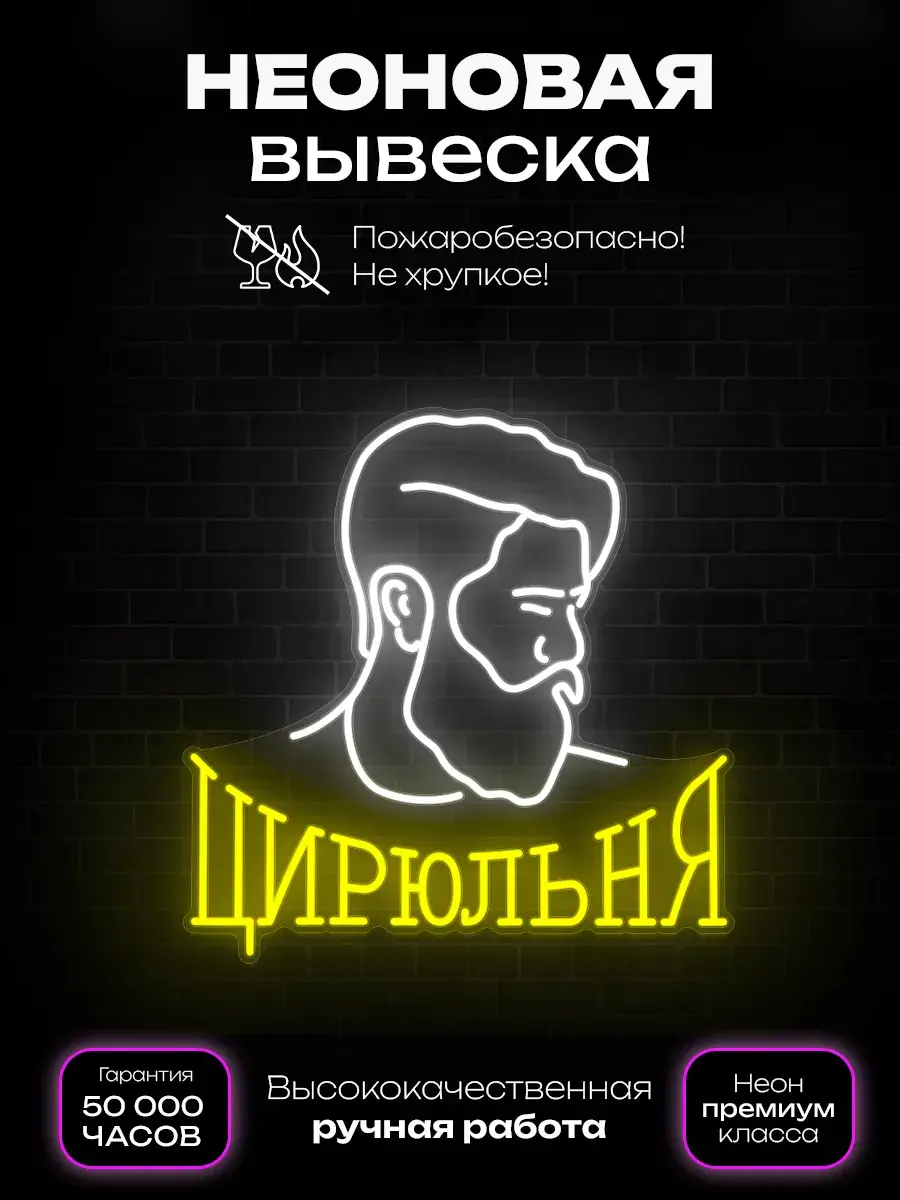 Неоновая вывеска “Цирюльня” представляет собой уникальное произведение искусства, которое непременно станет центром внимания и главным украшением любого интерьера. Она выполнена из высококачественных материалов с использованием современных технологий, что обеспечивает ее долговечность и яркость свечения.