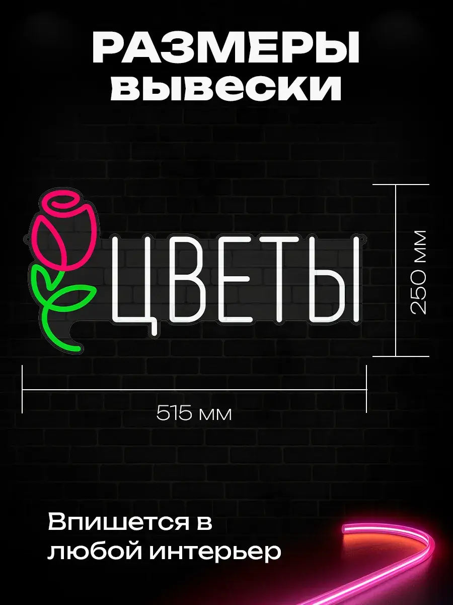 Создайте неповторимую атмосферу с элегантной неоновой вывеской "Цветы тюльпан" – идеальным решением для цветочного магазина, уютного кафе или современного офиса.