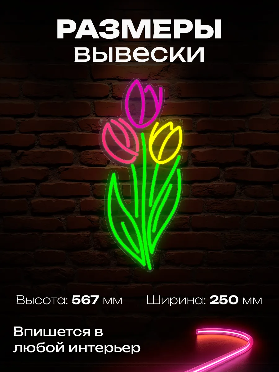 Неоновый знак Тюльпаны — это не только яркая реклама, но и стильное украшение. Его уникальный дизайн добавит нотку гламура в любой интерьер, превратив обычное пространство в необыкновенное.
