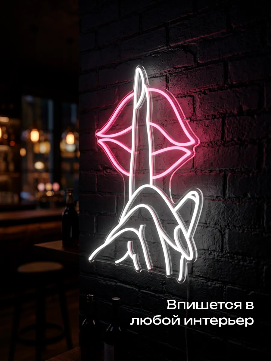 Неоновая вывеска «Рука с губами» — это потрясающее зрелище, особенно в тёмное время суток. Она создаёт неповторимую сказочную атмосферу и привлекает внимание клиентов.