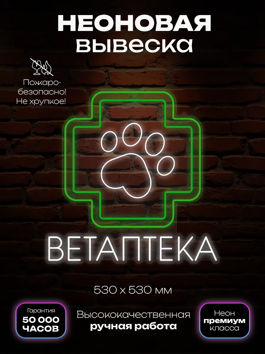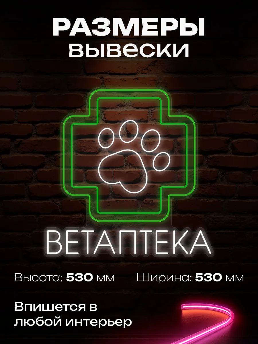 Неоновая вывеска Ветаптека — это гибкая светодиодная вывеска, которая создаёт яркое и привлекательное освещение. Она предназначена для установки на стенах и помогает привлечь внимание посетителей, а также повысить узнаваемость вашего бизнеса.