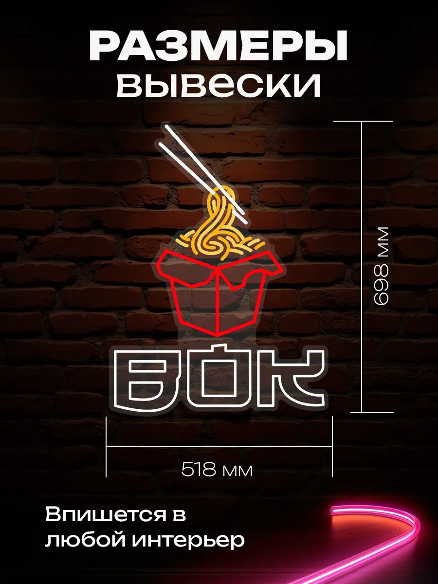Превратите любое пространство в атмосферное место с неоновой вывеской "Wok Лапша! Это не просто светильник настенный, а эффектный акцент для дома, кафе, офиса или праздника.