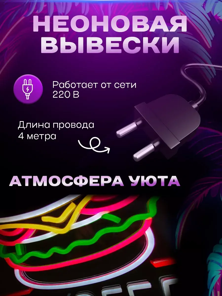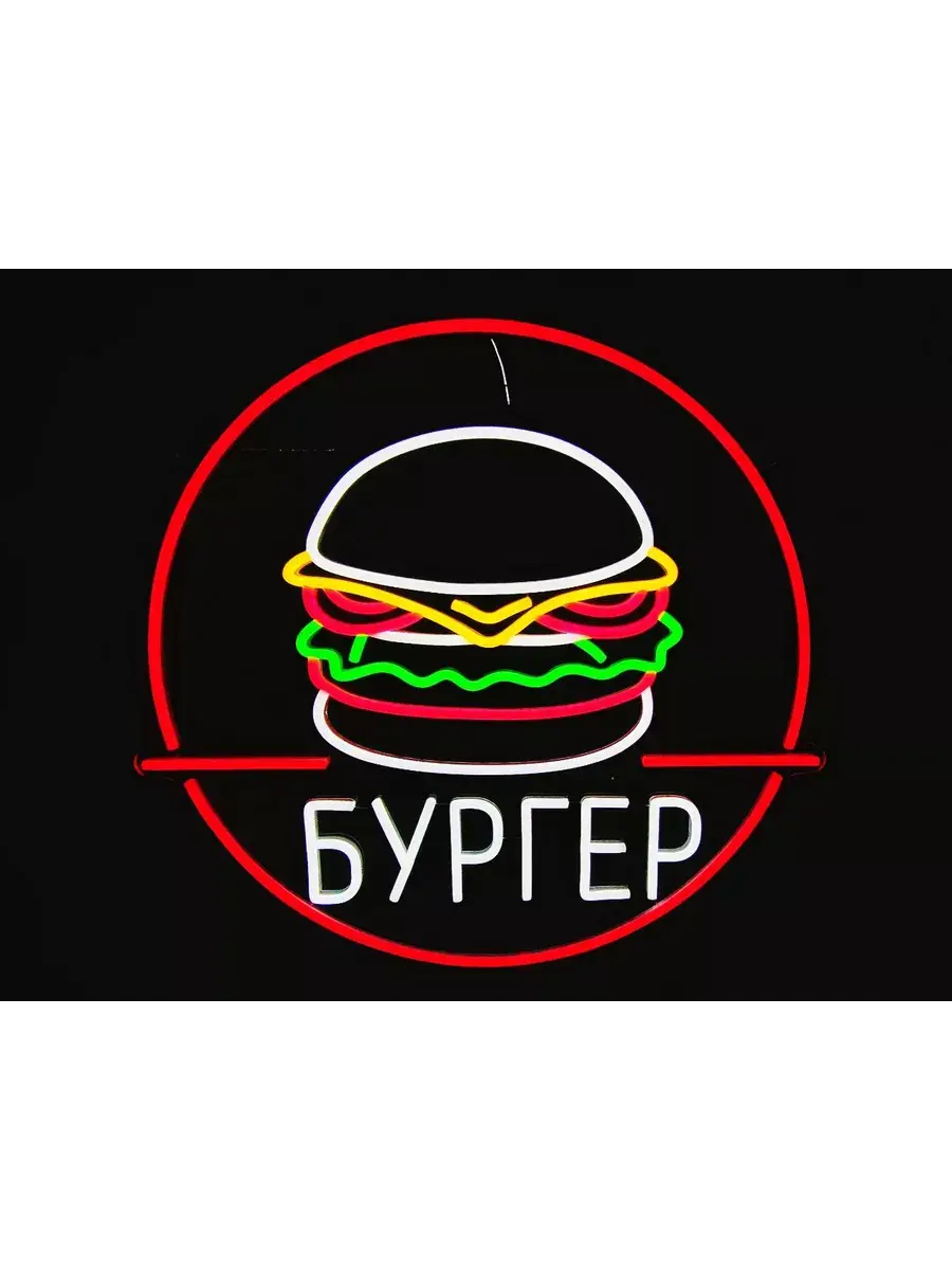 Неоновая вывеска, вывеска из неона, вывеска для фудкорта, неон, яркая вывеска для кафе, вывеска для бургерной,