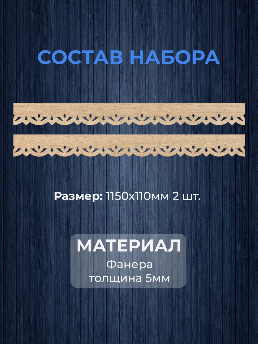 Ажурный фризовый обналичник из высококачественной фанеры предназначен для декоративного оформления дома. Комплект включает элементы, которые идеально подходят для выделения фасада, подчеркивают архитектурный стиль и индивидуальность здания. Точные размеры и продуманный контур облегчают монтаж, обеспечивая аккуратное прилегание к поверхности. Использование этого украшения позволяет гармонично завершить внешний вид дома и придать фасаду элегантность.